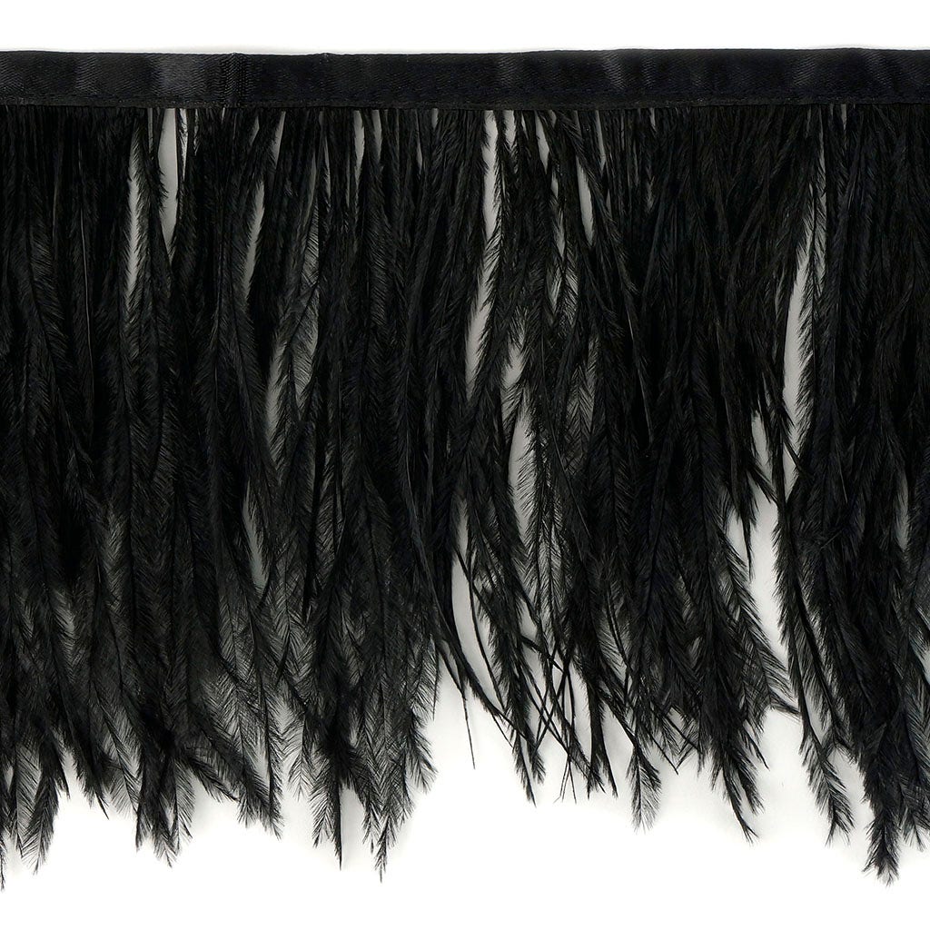 This handmade Feather Fringe is made from Ostrich feathers approximately 4-5 inches long and comes in a 1 yard piece. These feathers are sewn on to a satin-blend bias tape with approximately 16-18 feathers per inch making it a One Ply layer of thickness.