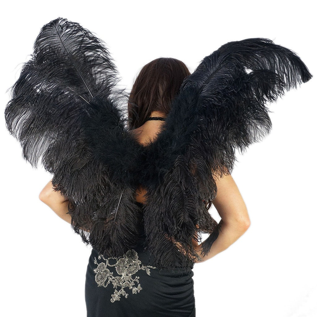 Large Adult Angel Fairy Butterfly Ostrich Feather Wings - Black