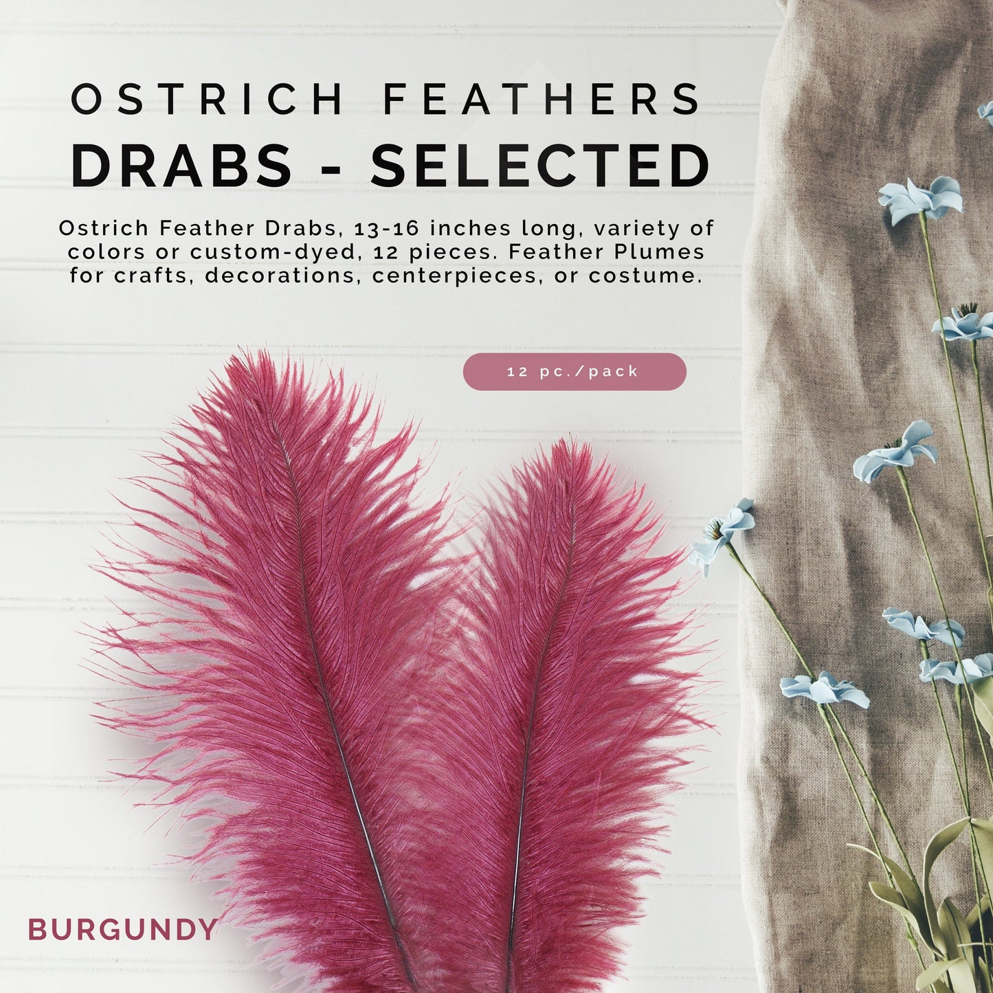 Ostrich Drabs are approximately 13-16" long. The 1 piece and 12 piece packages are hand selected. The 25 piece packages are bulk, non selected and 1/4 lb ostrich feathers bulk contain approximately 60 pieces, non-selected.