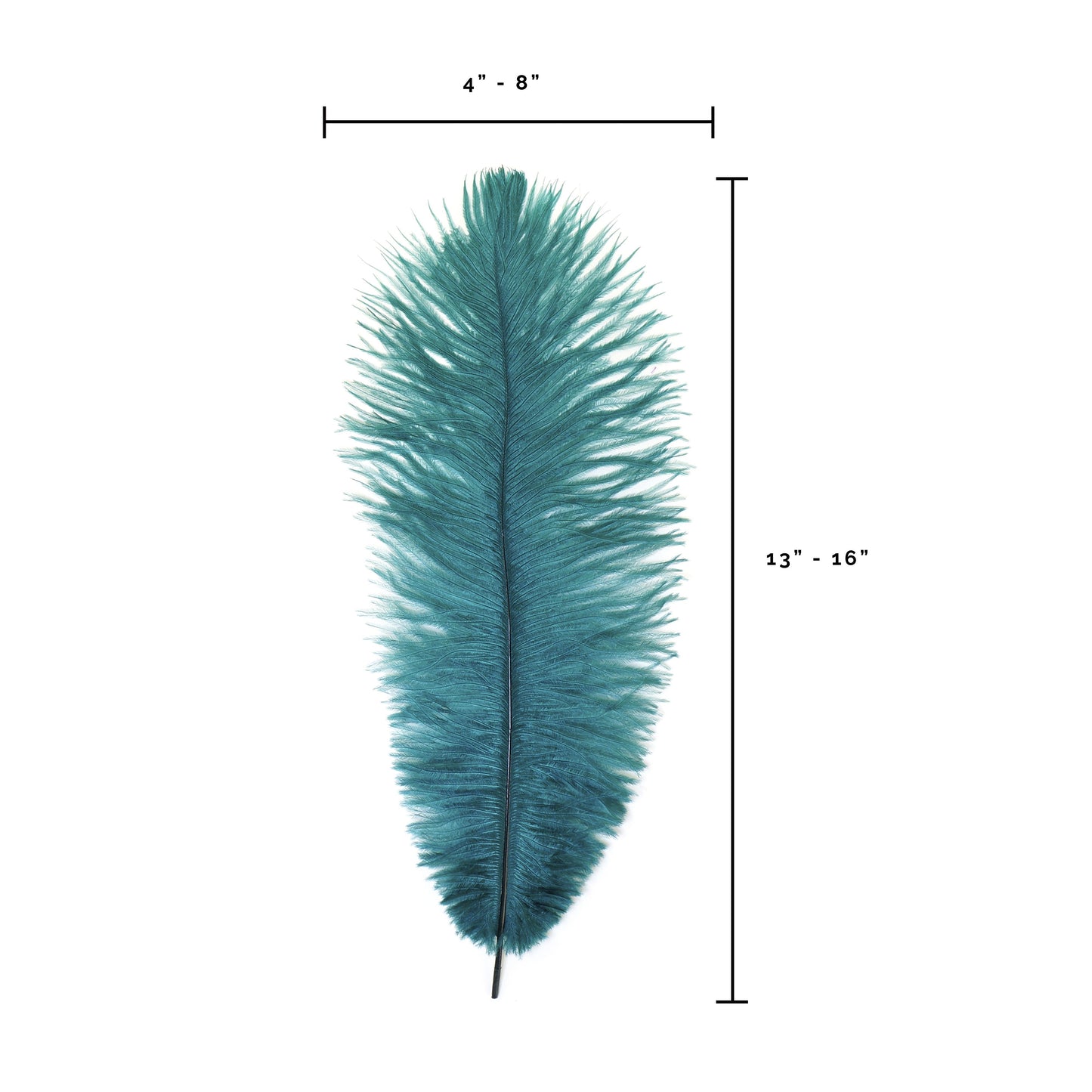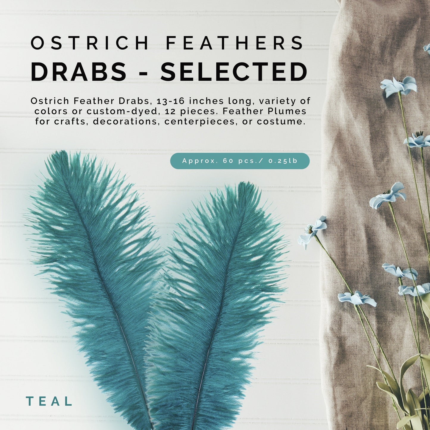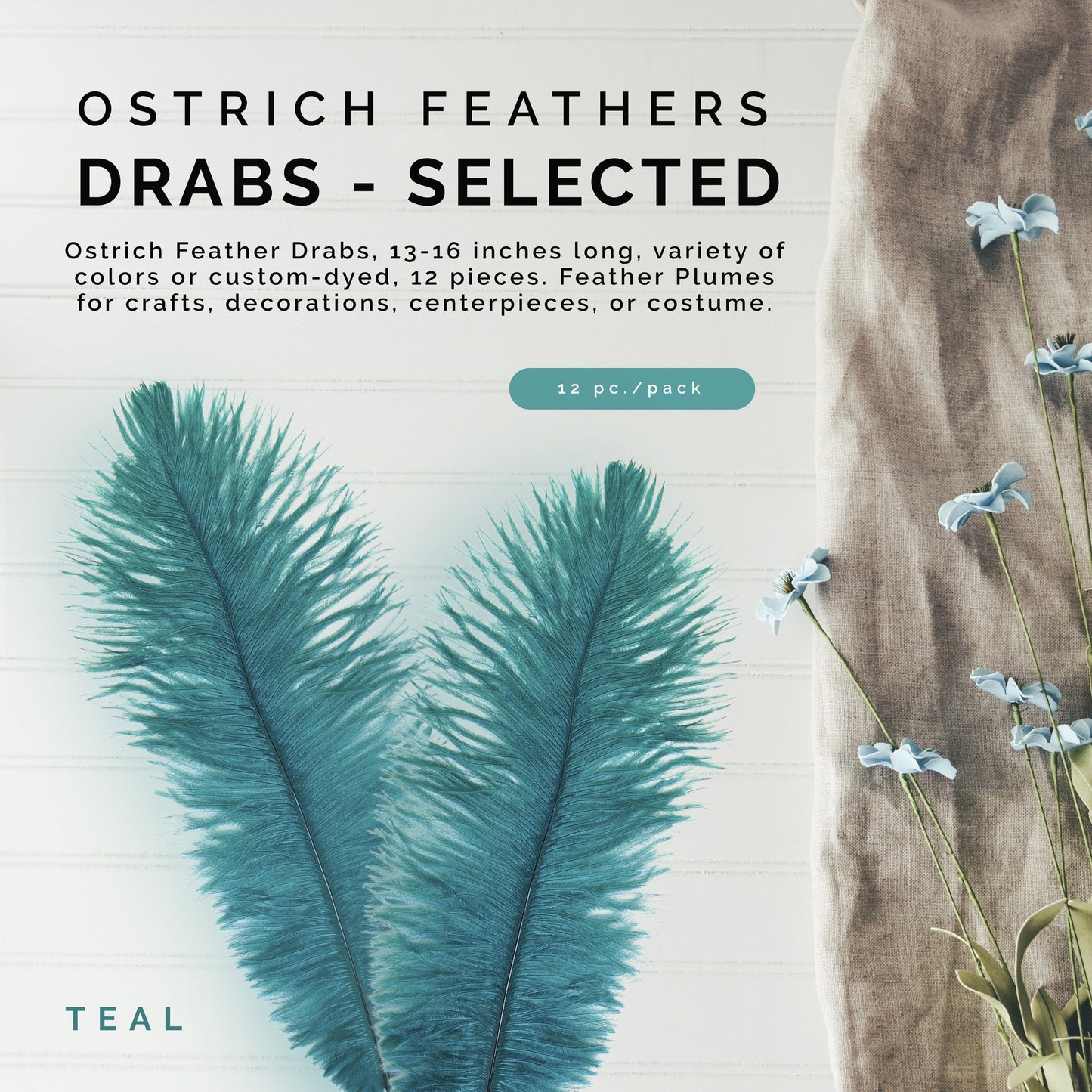 Ostrich Drabs are approximately 13-16" long. The 1 piece and 12 piece packages are hand selected. The 25 piece packages are bulk, non selected and 1/4 lb ostrich feathers bulk contain approximately 60 pieces, non-selected.