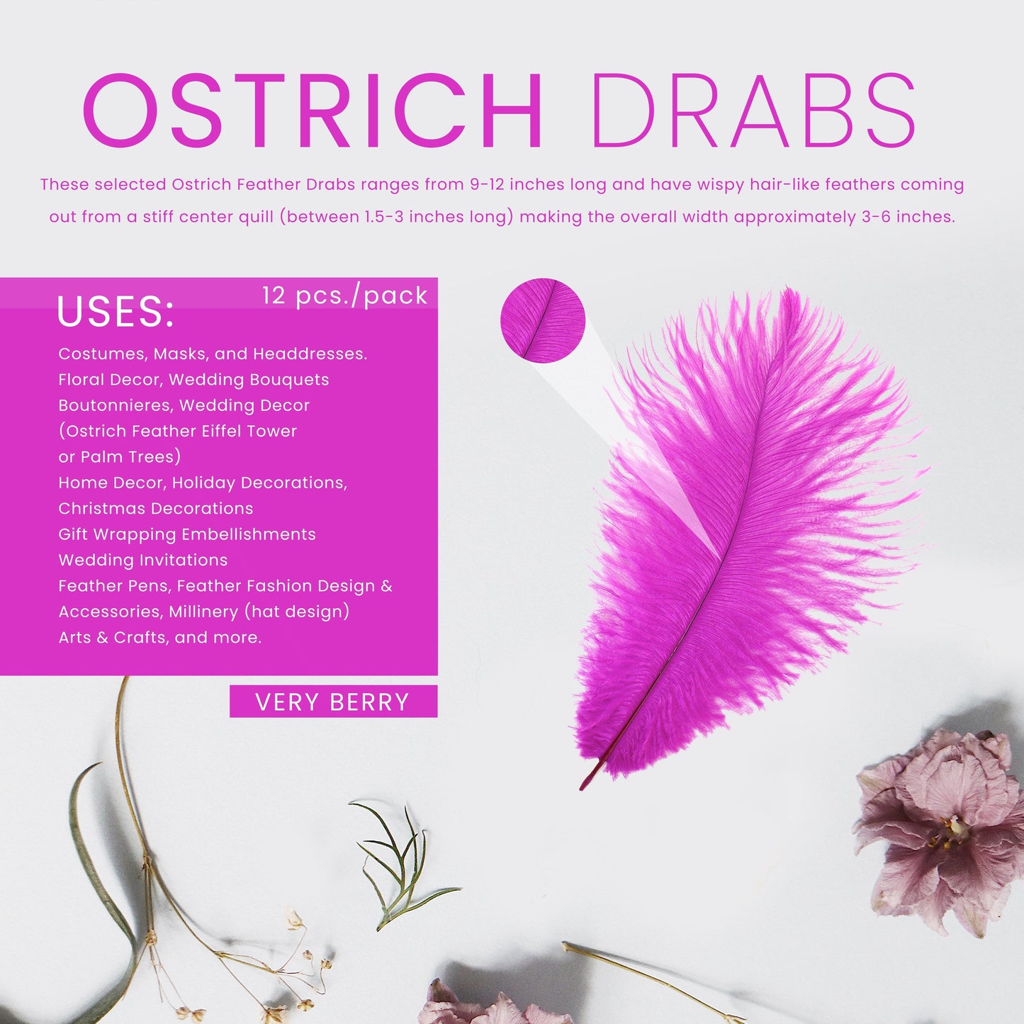 Ostrich Feathers 9-12" Drabs - Very Berry