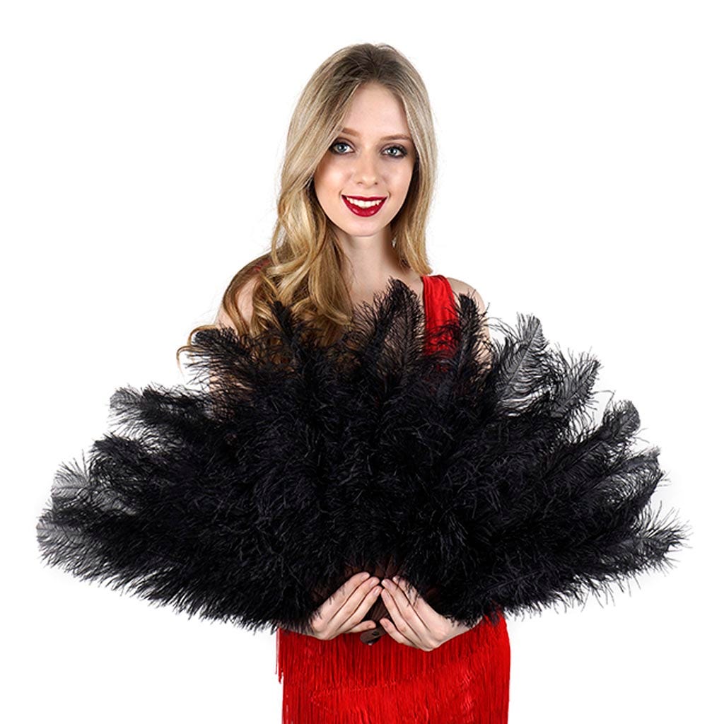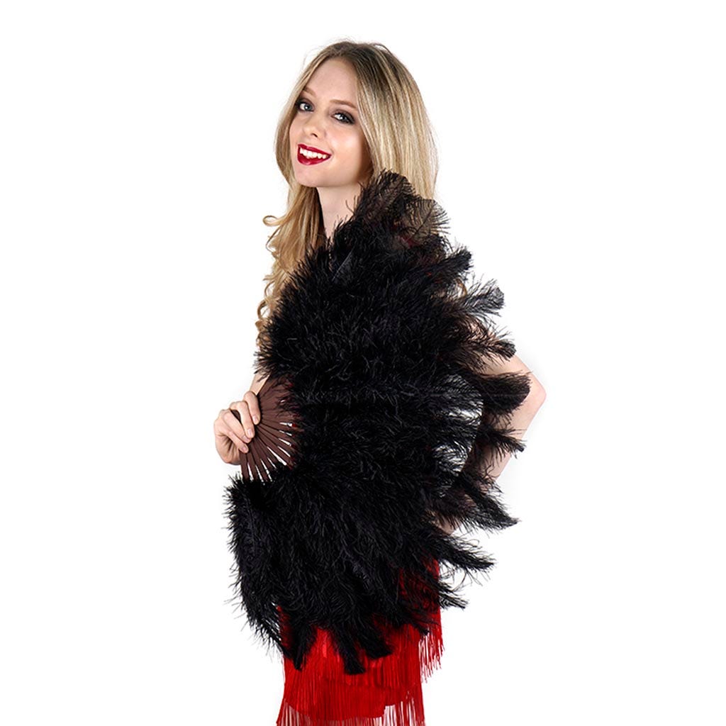 Ostrich Floss Feather Fan - Black