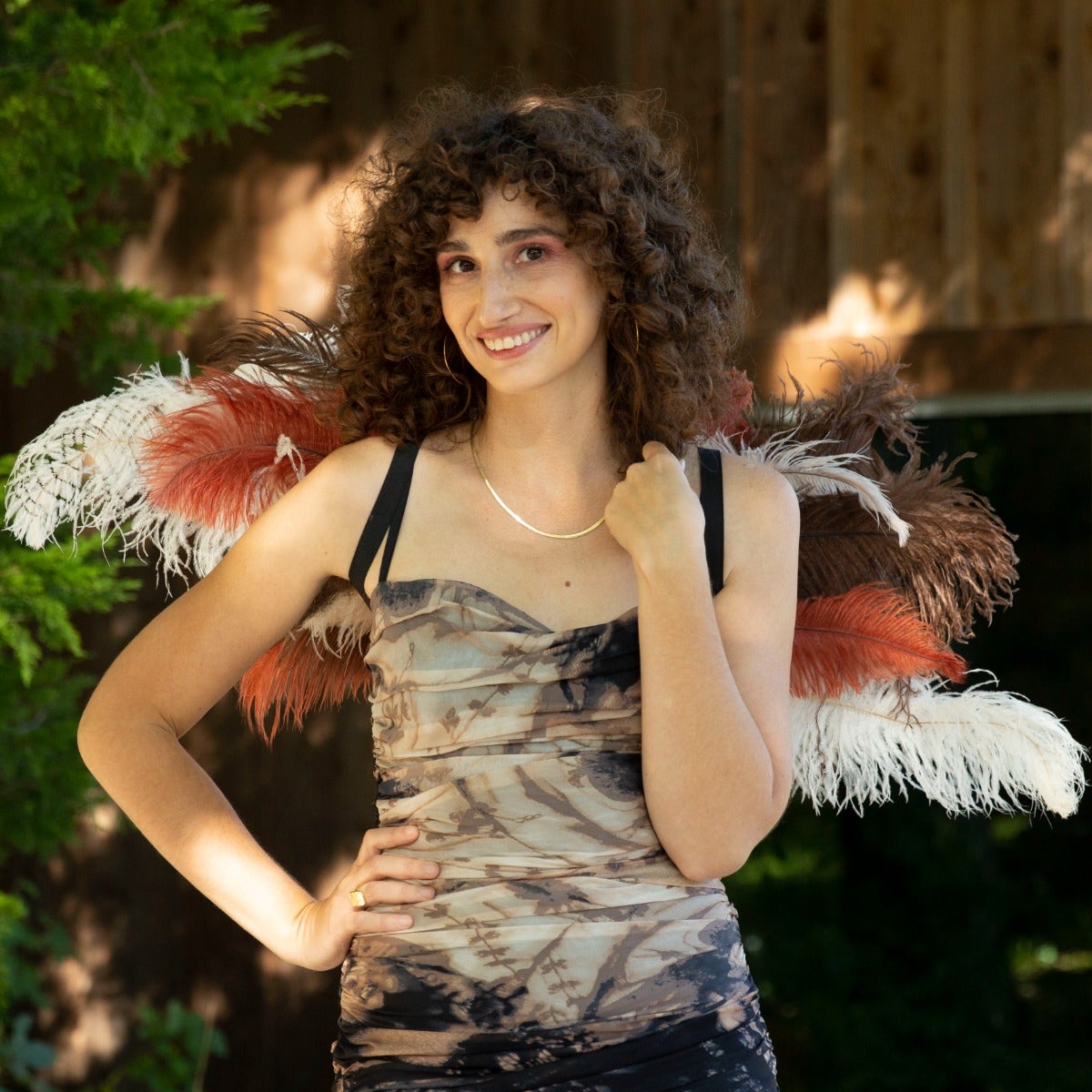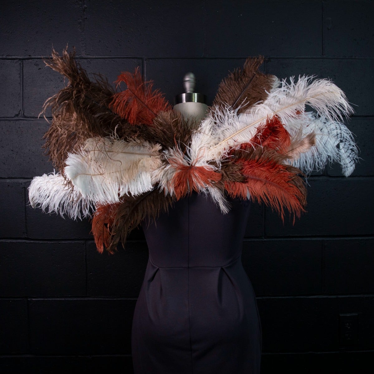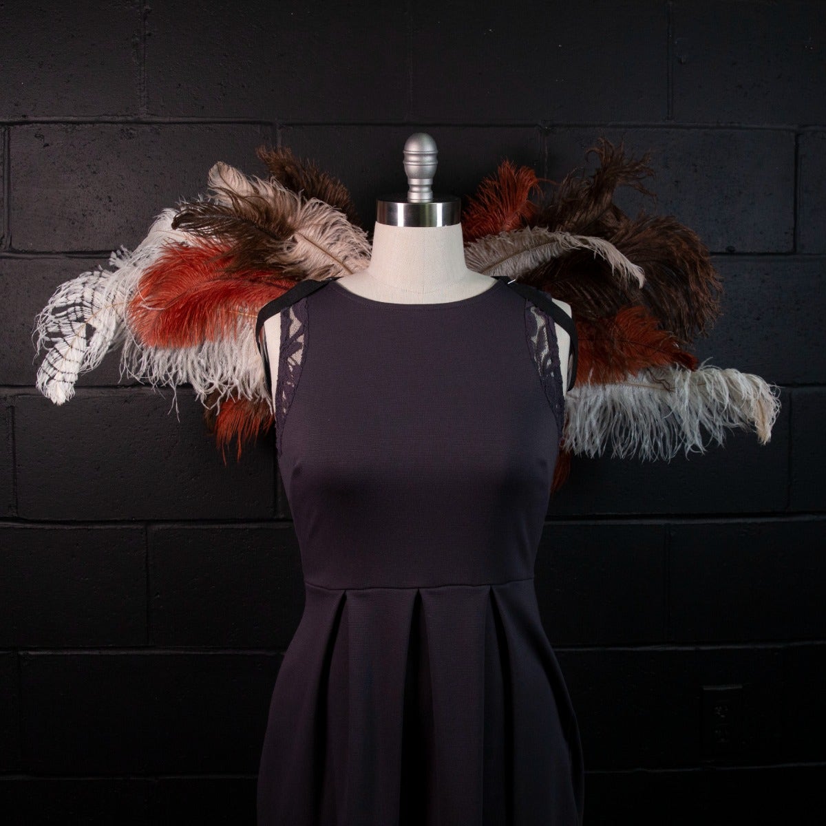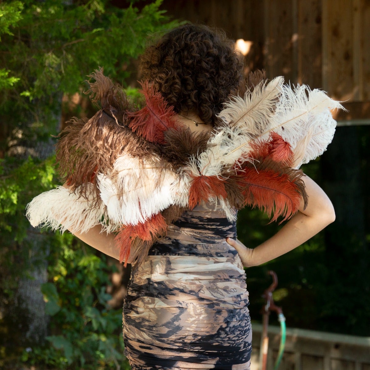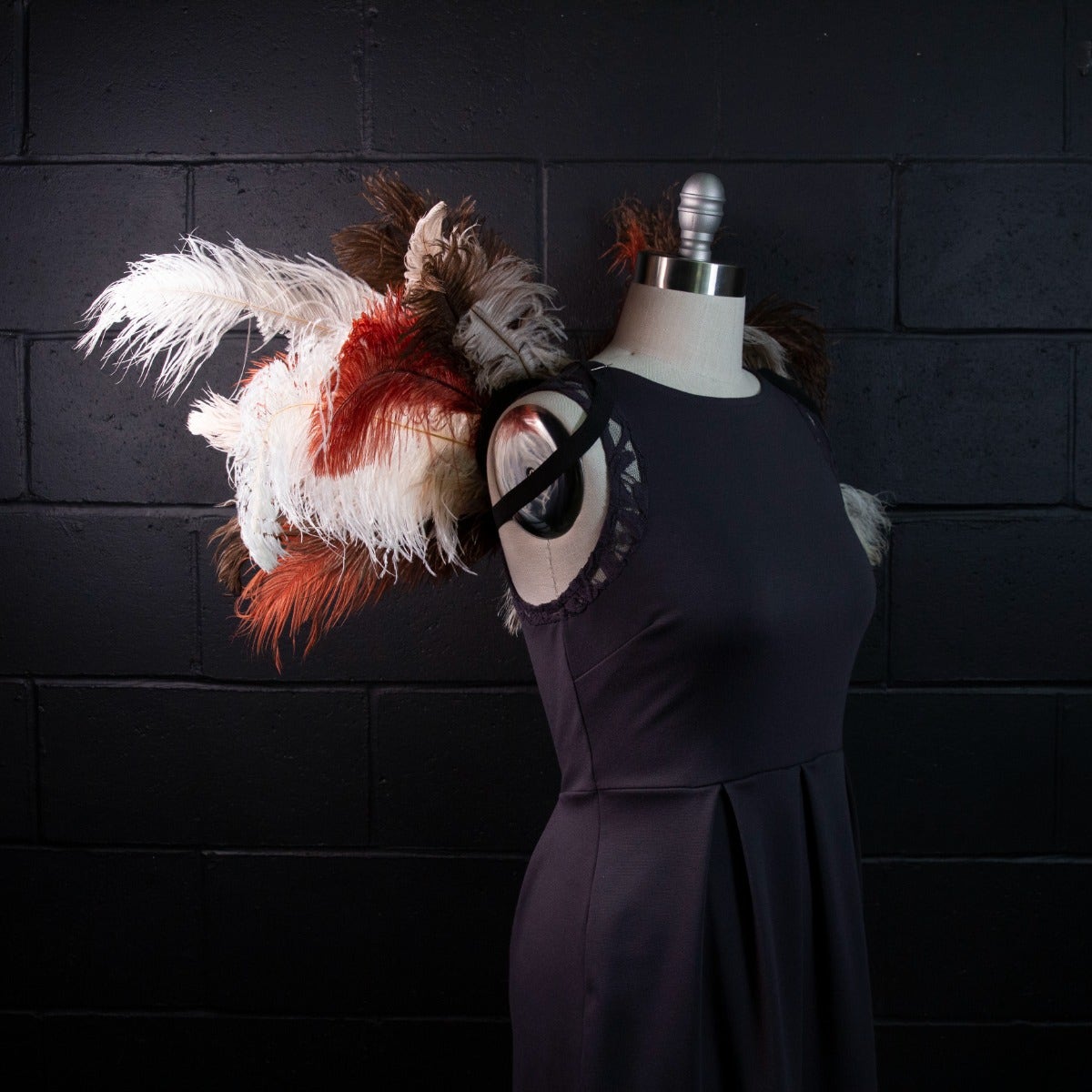 Medium Owl Upcycled Ostrich Feather Costume Wings made with 2nd Quality Ostrich Feathers, Fantasy Costume Feather Wings ZUCKER�� Original Designs