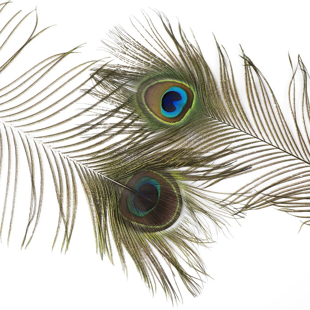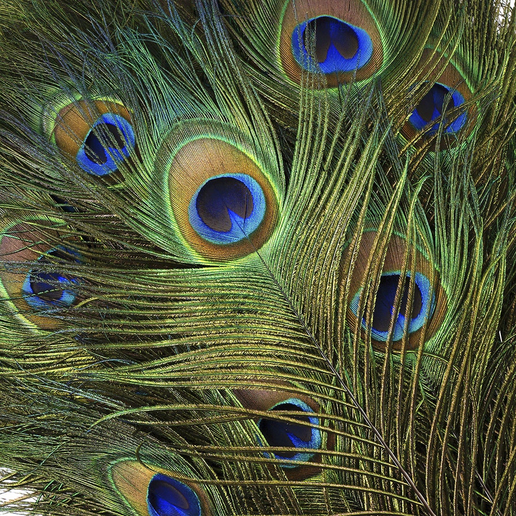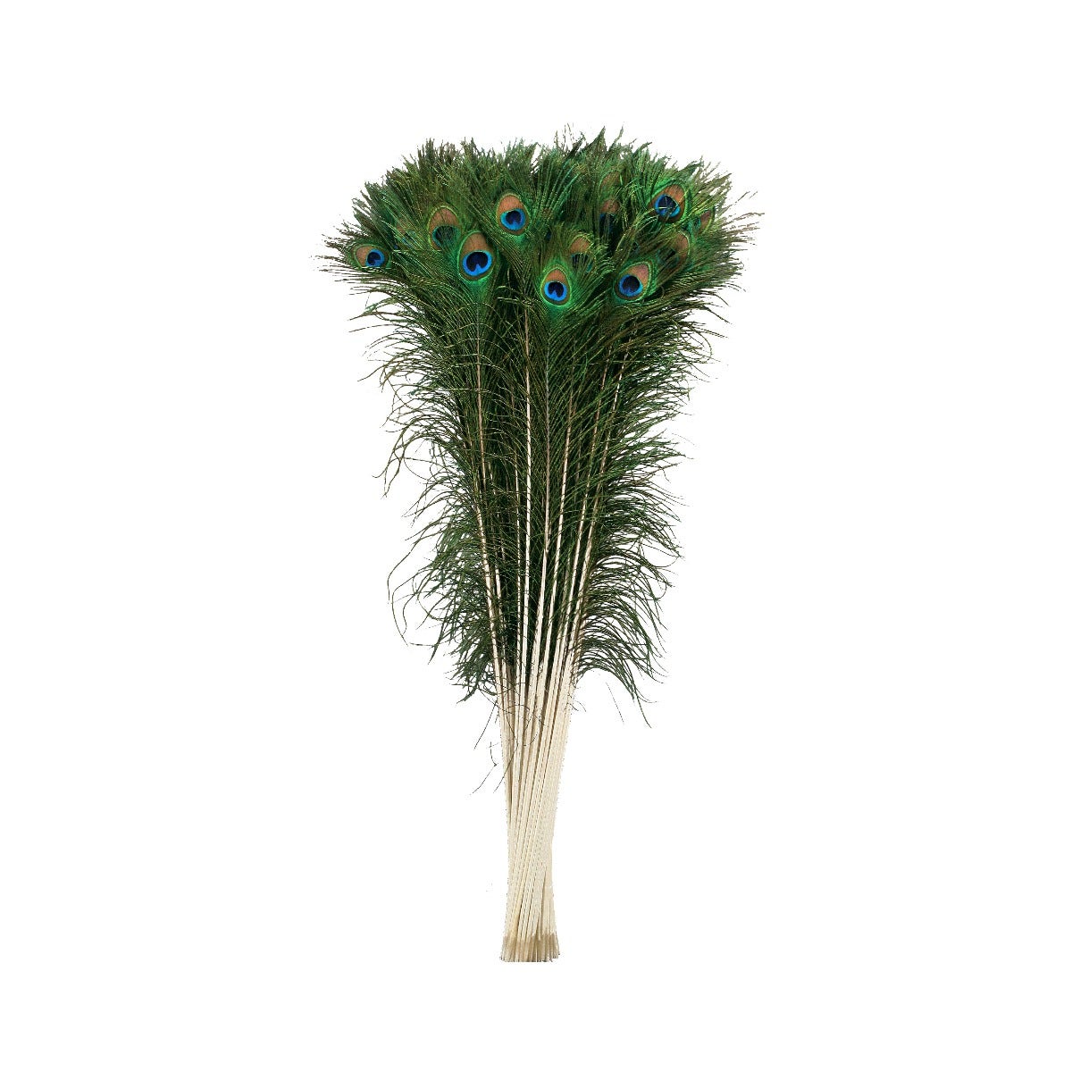 Natural Peacock Eye Feathers are approximately 40-45 inches long and come in a 10 piece package.