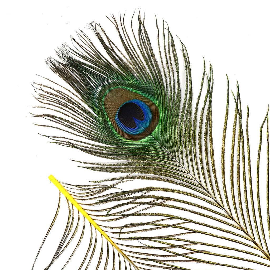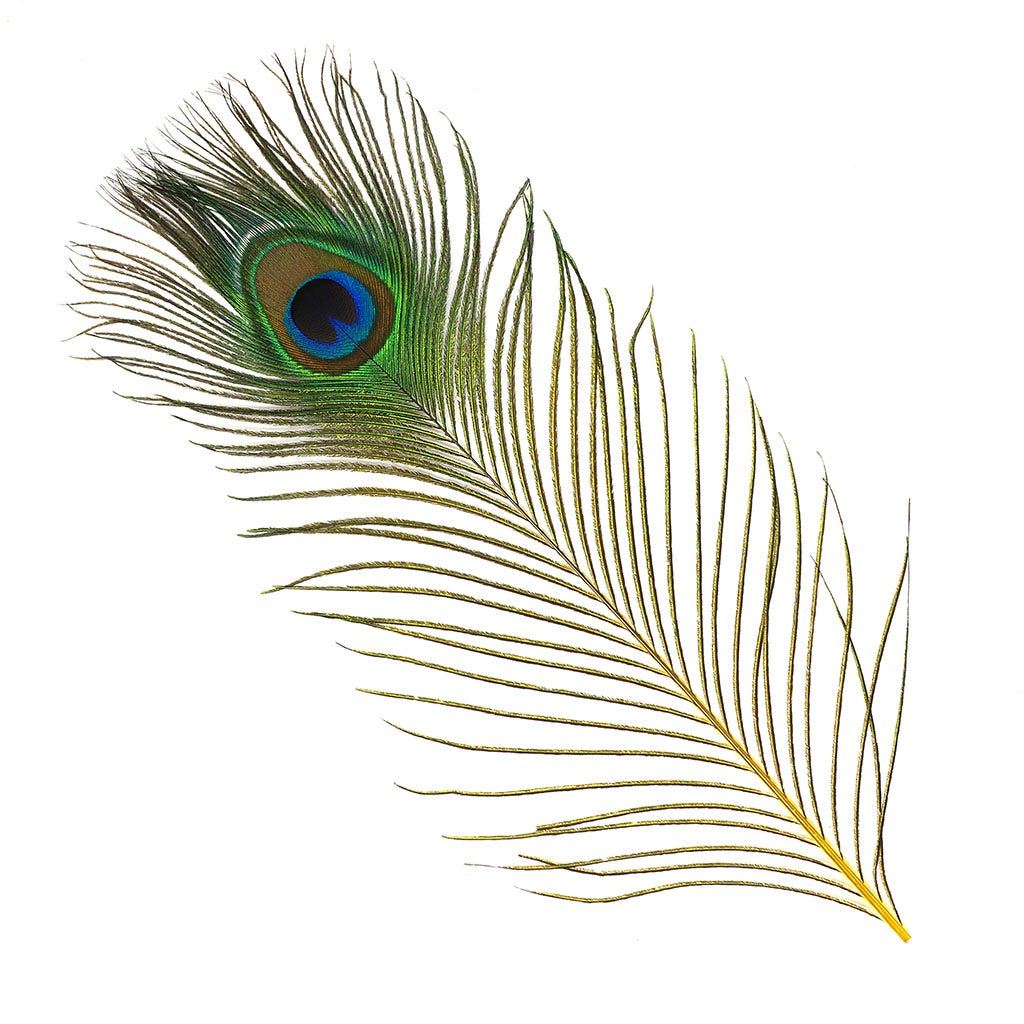 Dyed Stem Peacock Eye Feathers are approximately 8-15 inches long and come in a 25 piece package.