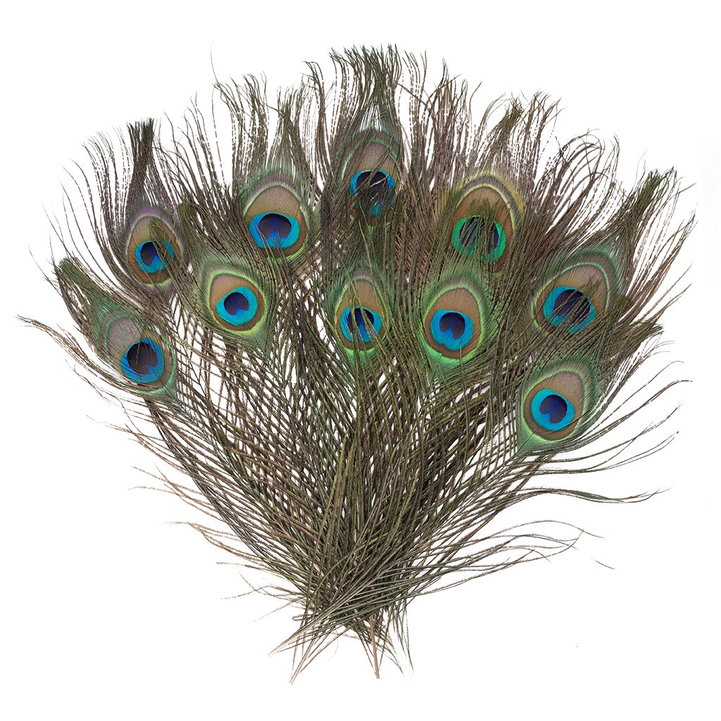 Natural Peacock Eye Feathers are approximately 8-15 inches long and come in a 25 piece package.
