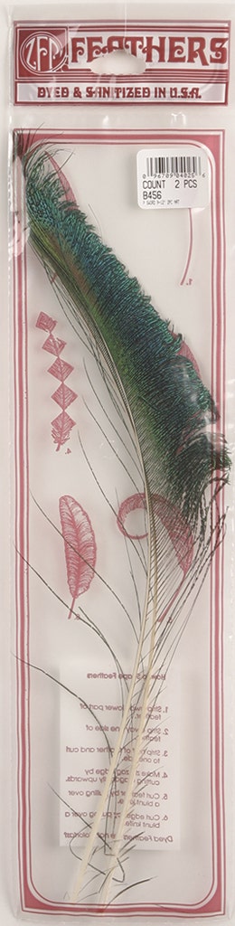 Natural Peacock Sword Feathers are approximately 10-15 inches long and come in a 2 piece package.
