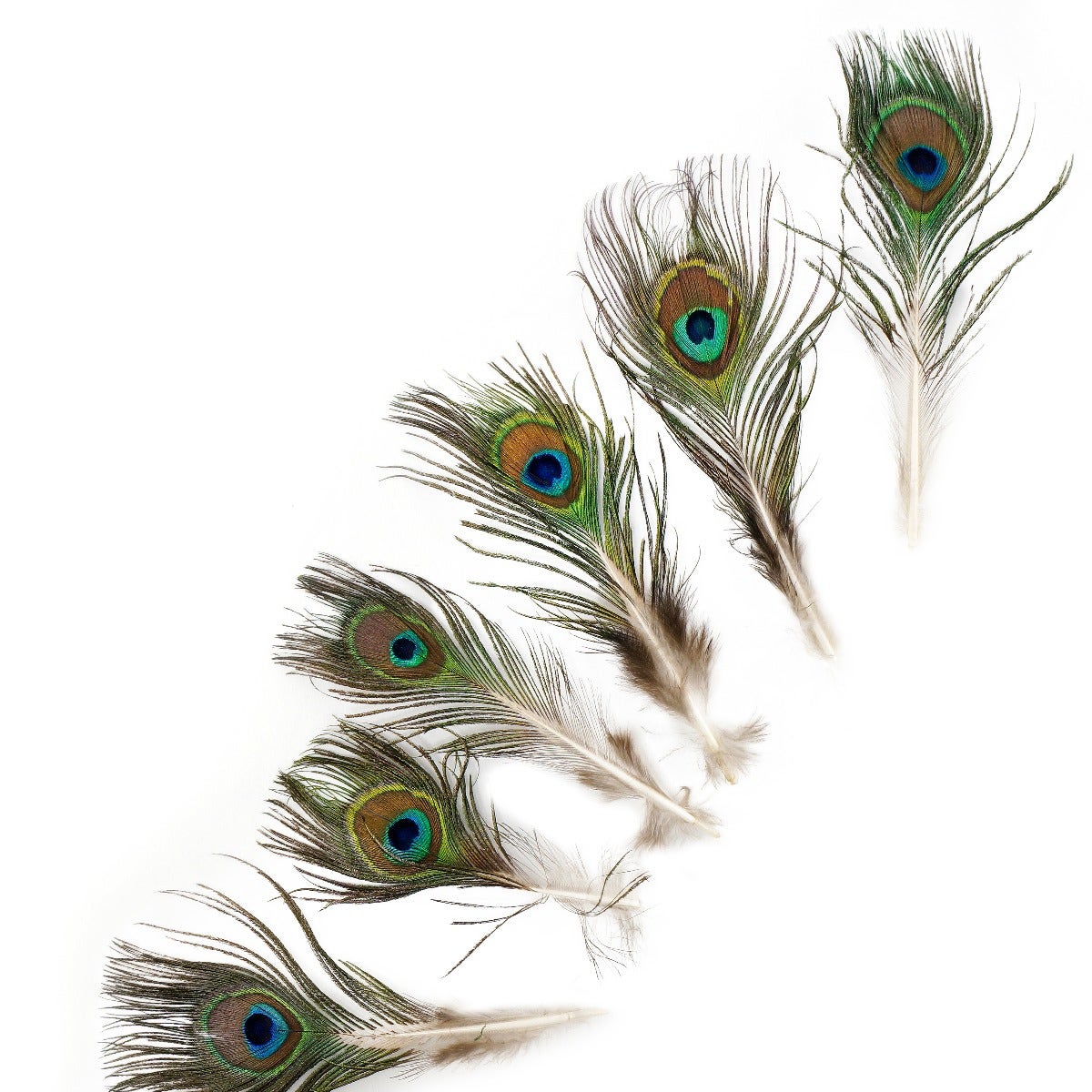 Natural Peacock w/ Small Complete Eye Feathers are approximately 2-4 inches long and come in a 25 piece package.