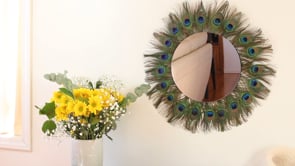 Made to Order - Decorative Peacock Feather Mirror: 24" diameter, the mirror is 11" 5/8 diameter.