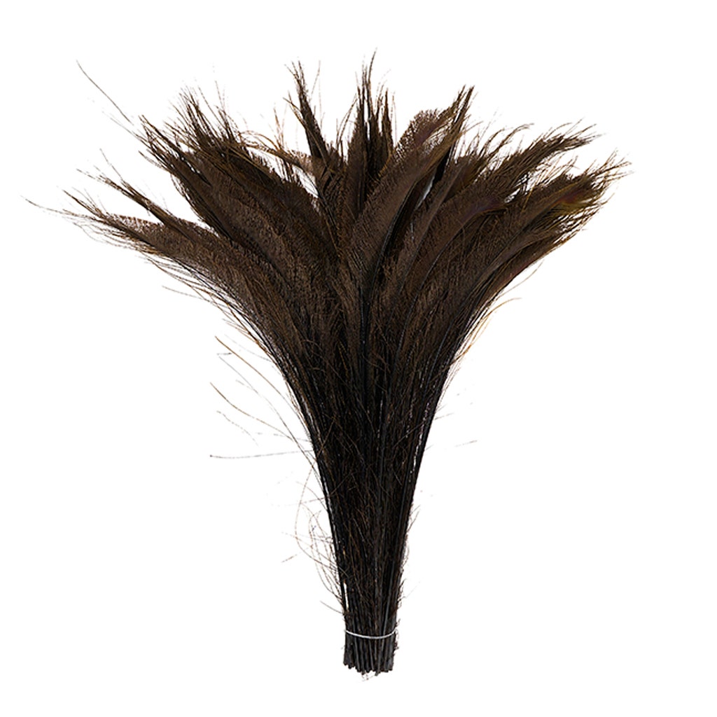 Bleached and Dyed Peacock Sword-Tail Feathers will range from 15-25 inches long and are dyed in vibrant solid colors all the way through the feather including the stem (quill). These Peacock Sword feathers are naturally curved, and have a blade-like shape with feathers extending from the right side of the quill. Peacock swords can be curled using scissors in the same manner as curling ribbon. This item is packaged with 100 pieces of both right and left side tail feathers. Mixed right and left sword tail packages are available in our Packaged Feather category in smaller quantities.