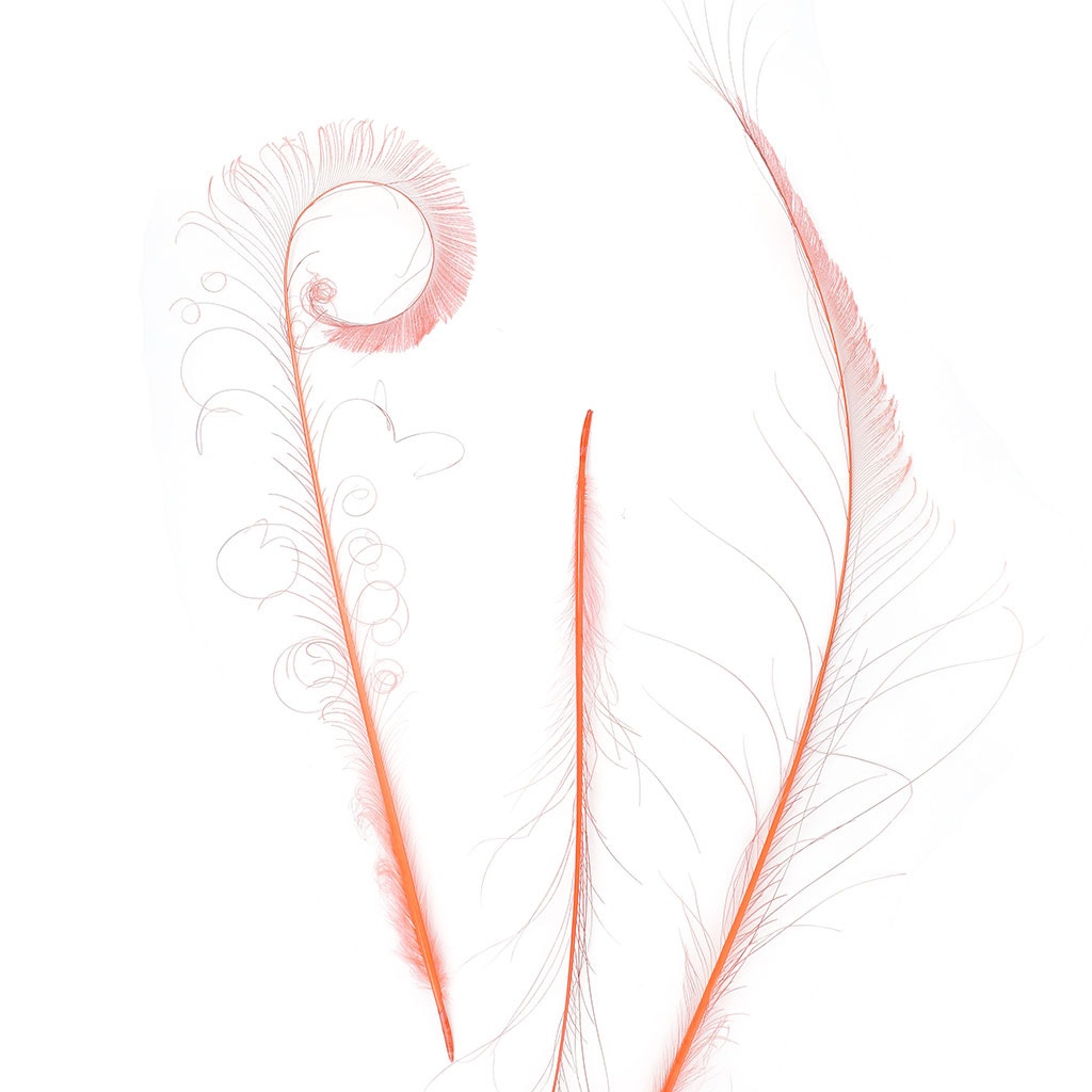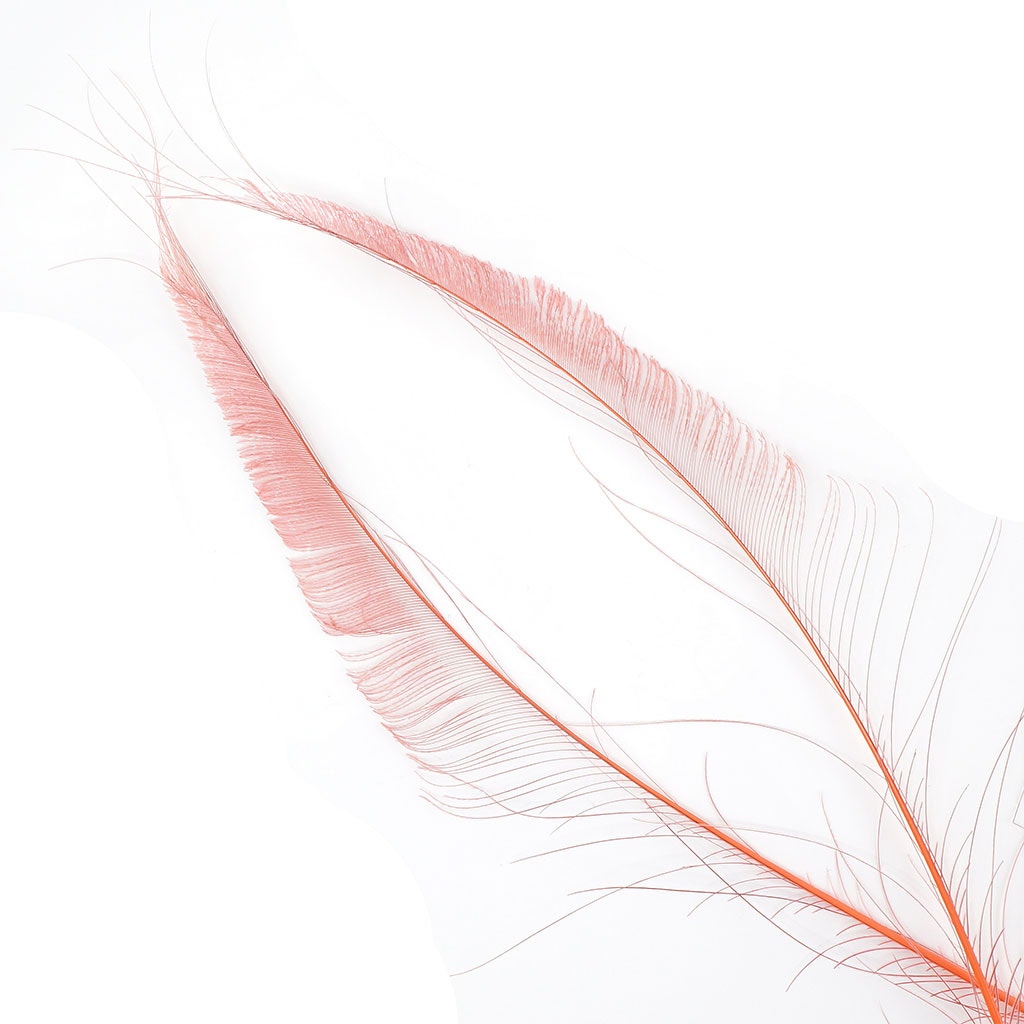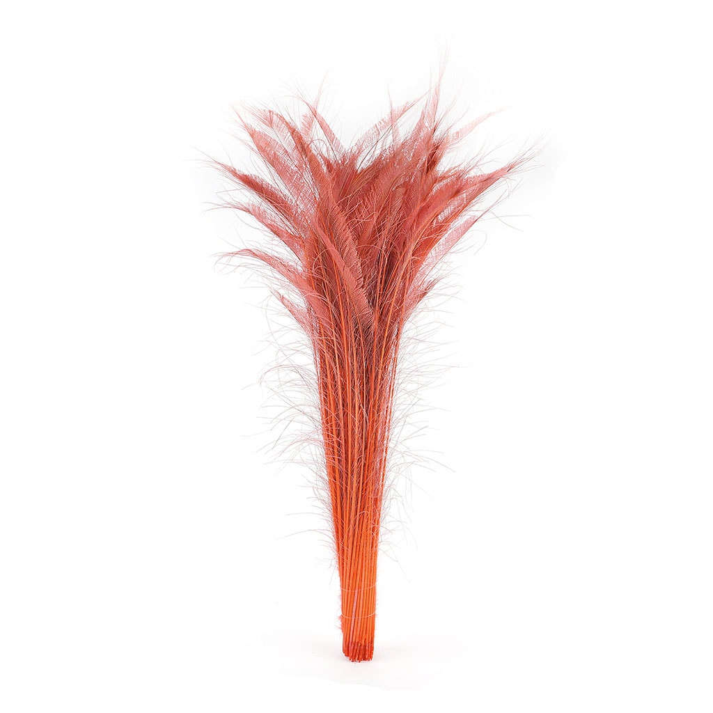 Bleached and Dyed Peacock Sword-Tail Feathers will range from 25-40 inches long and are dyed in vibrant solid colors all the way through the feather including the stem (quill). These Peacock Sword feathers are naturally curved, and have a blade-like shape with feathers extending from the right side of the quill. Peacock swords can be curled using scissors in the same manner as curling ribbon. This item is packaged with 100 pieces of both right and left side tail feathers. Mixed right and left sword tail packages are available in our Packaged Feather category in smaller quantities.