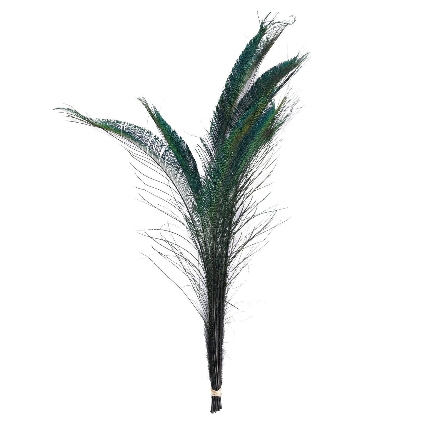 Stem Dyed Peacock Sword Feathers are approximately 15-25 inches long and come in a 10 piece package.