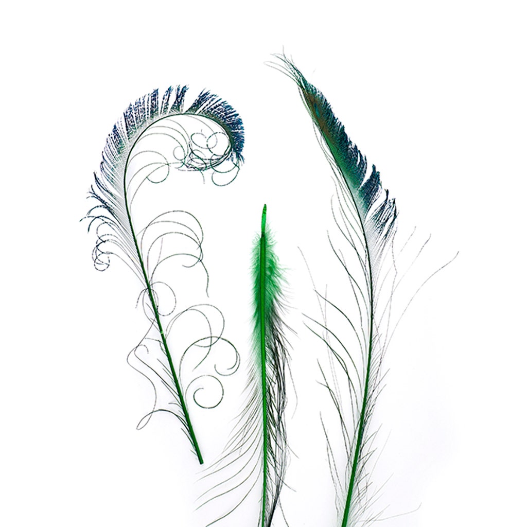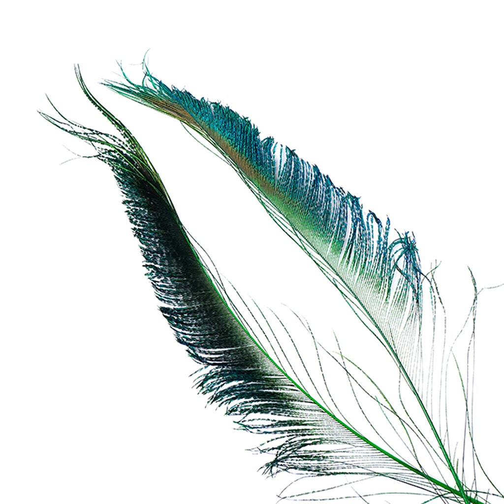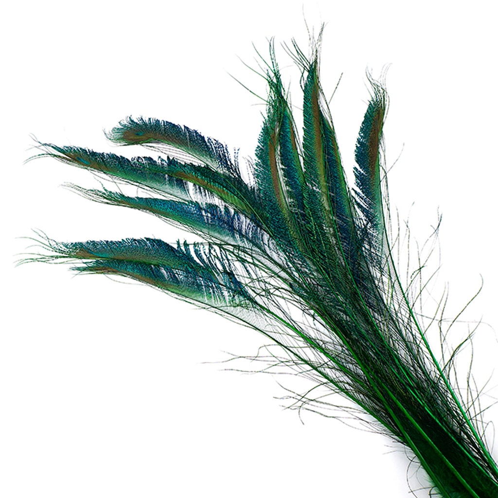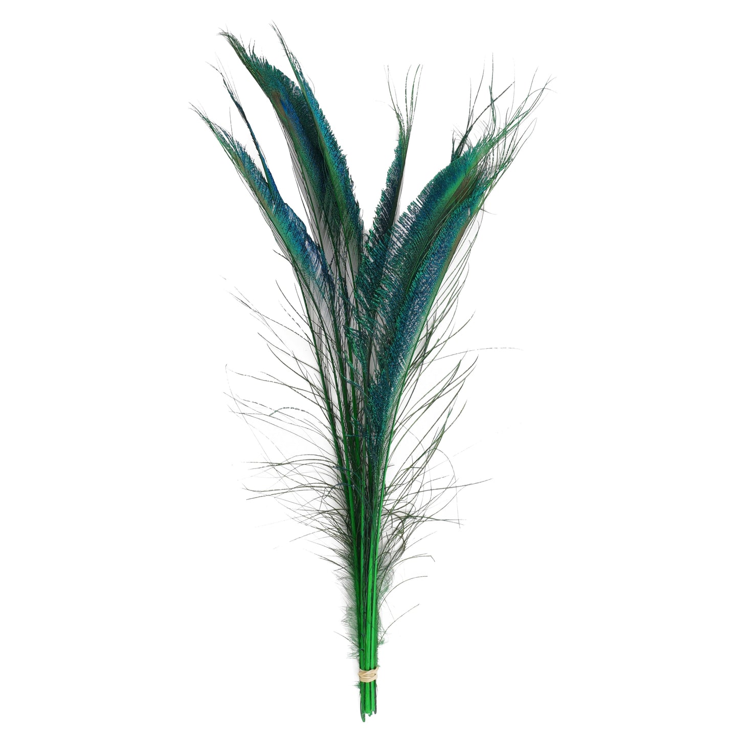 Stem Dyed Peacock Sword Feathers are approximately 15-25 inches long and come in a 10 piece package.