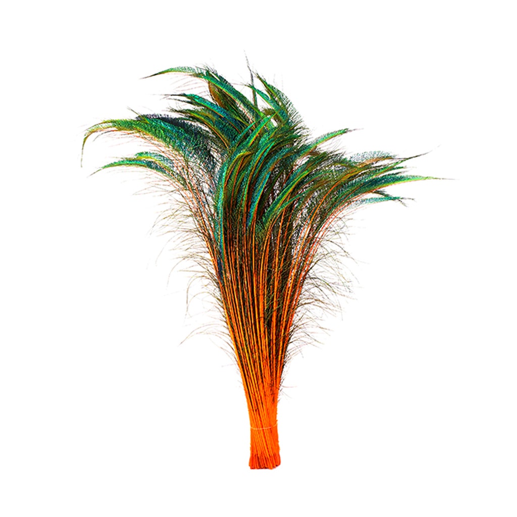 Bulk Peacock Sword Feathers Stem Dyed - 100 pc - 25-40" - Orange