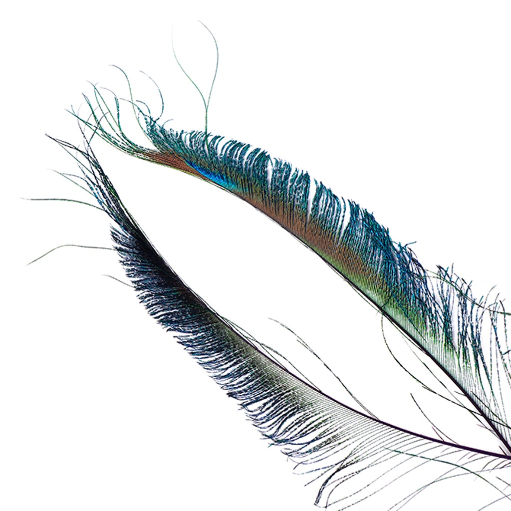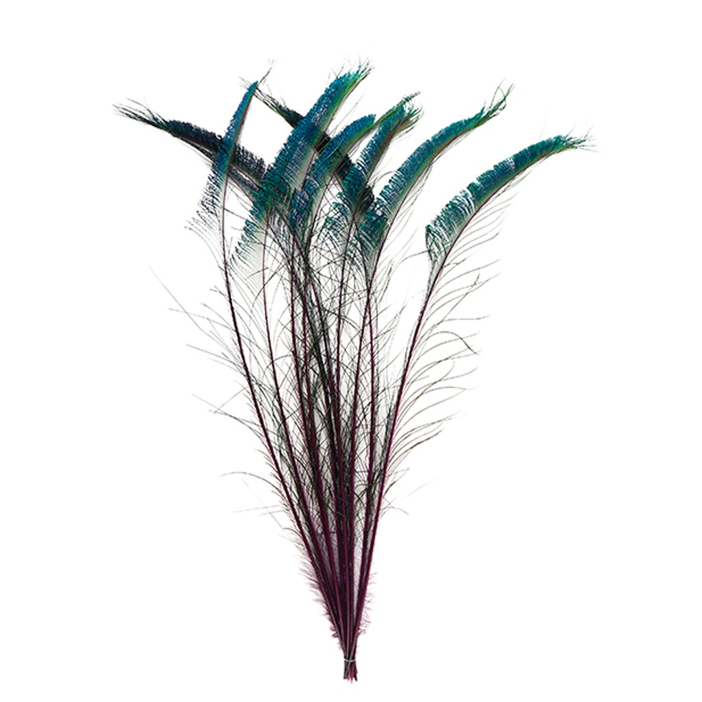 Stem Dyed Peacock Sword Feathers are approximately 25-40 inches long and come in a 10 piece packaged.