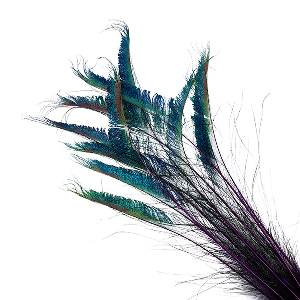 Stem Dyed Peacock Sword Feathers are approximately 15-25 inches long and come in a 10 piece package.