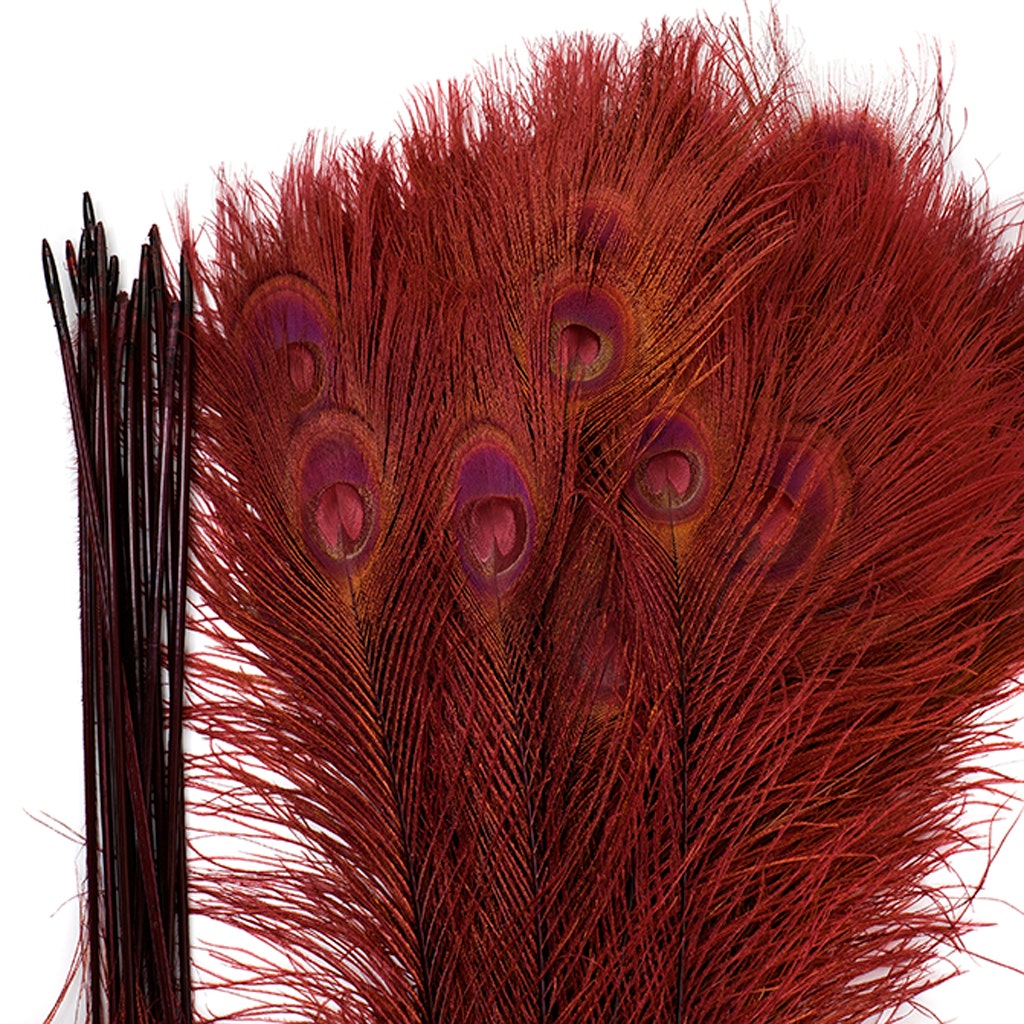 Peacock Tail Eyes Bleached Dyed - 25-40 Inch - 100 PCS - Burgundy