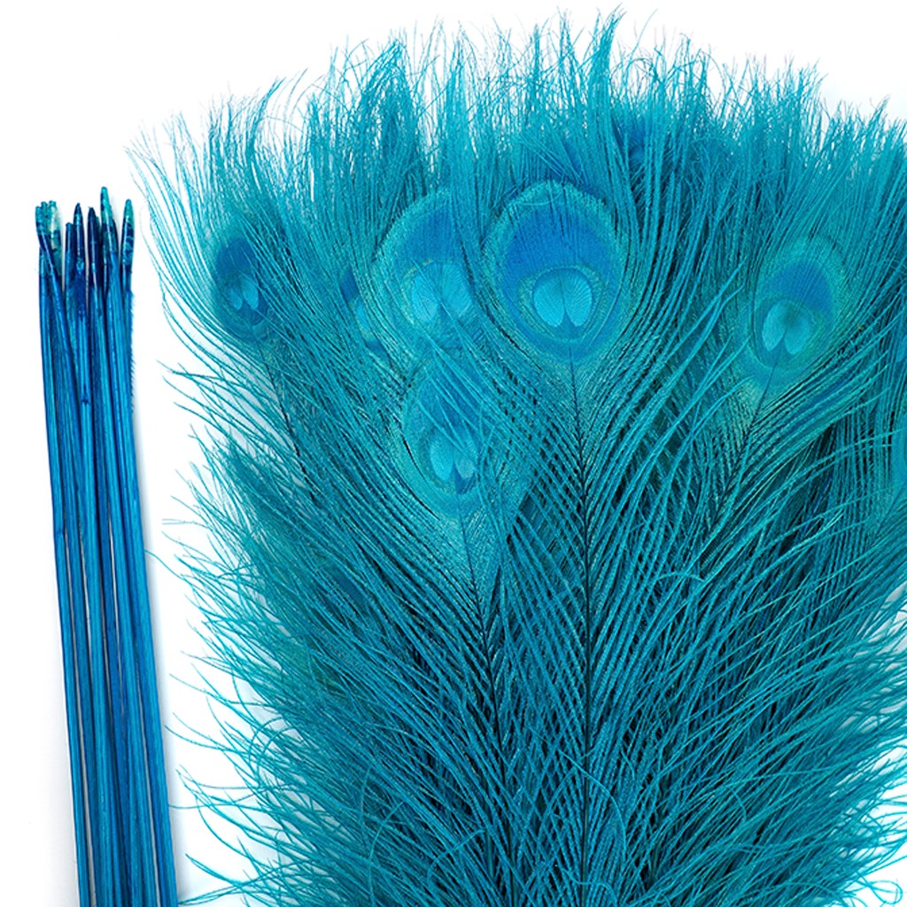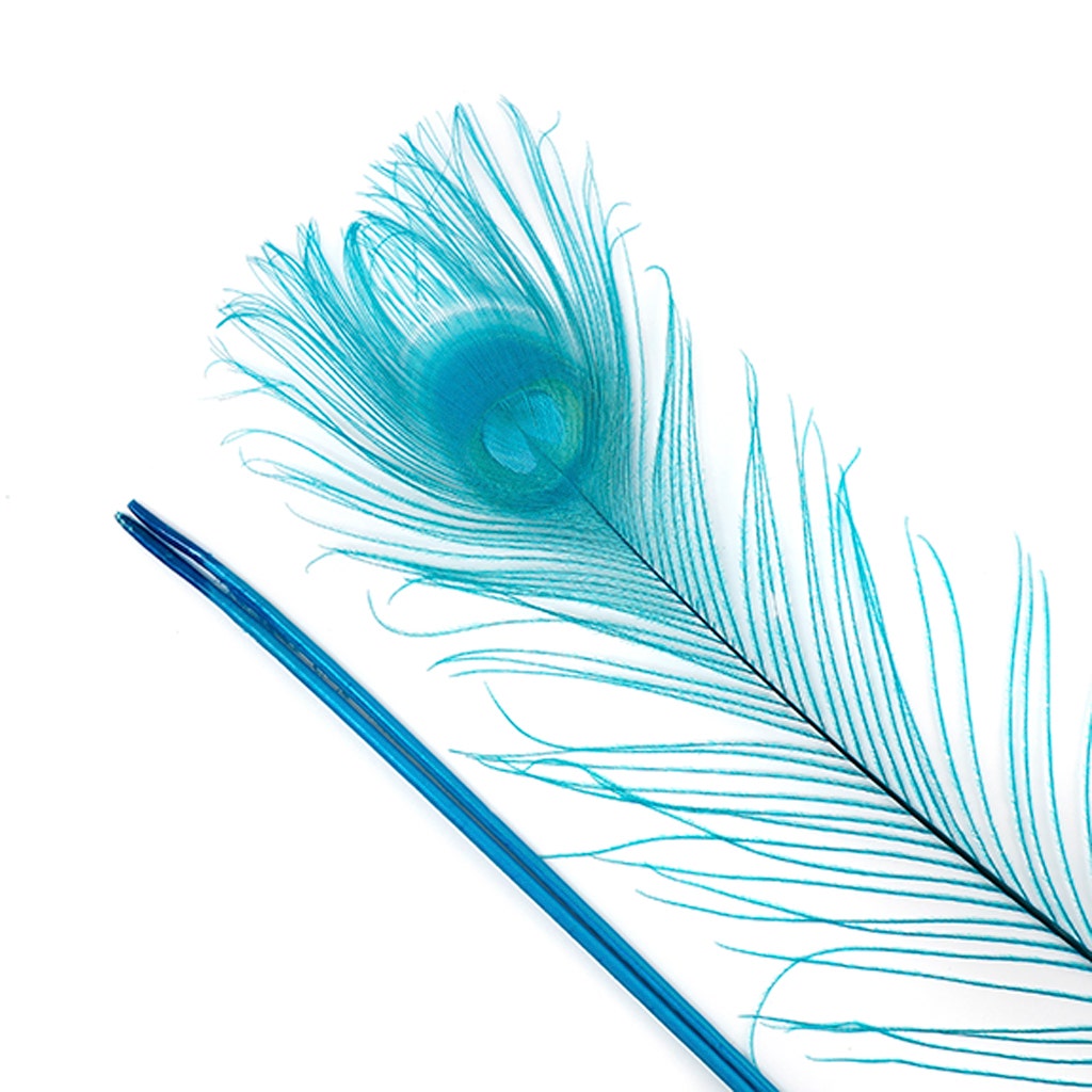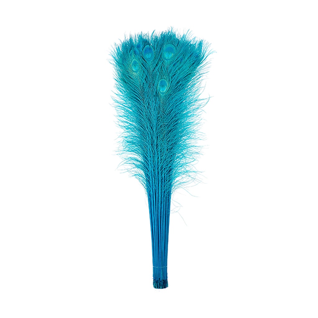 Peacock Tail Eyes Bleached Dyed - 25-40 Inch - 100 PCS - Dark Aqua