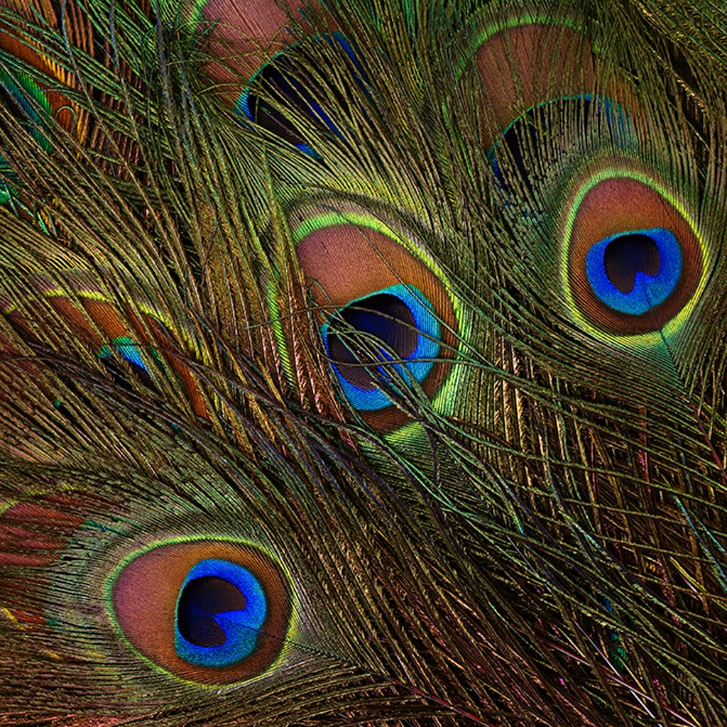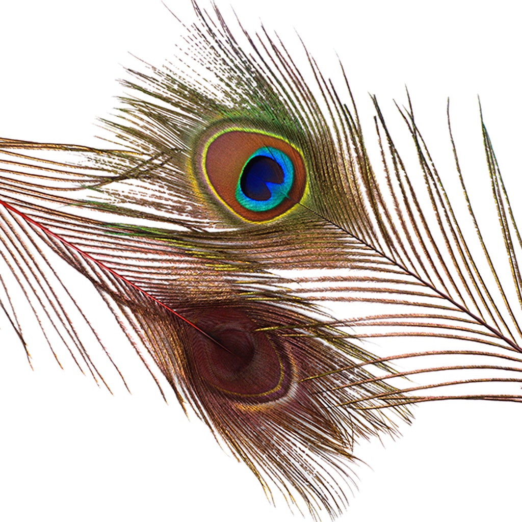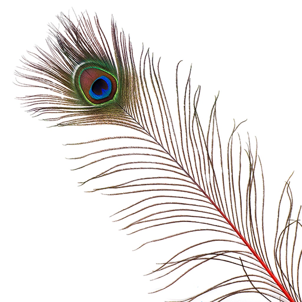 Stem Dyed Peacock Tail Feathers with Full Eyes 30-40 inches long are treated with dyes that stain the entire quill (stem), and amplify the natural iridescent hues of the peacock feathers. Although treated with dye, the original amber, green, purple, and blue colors of the peacock eye remain visible. The width of the full eyes including the surrounding hair-like flue will range 1.5-4.5 inches.