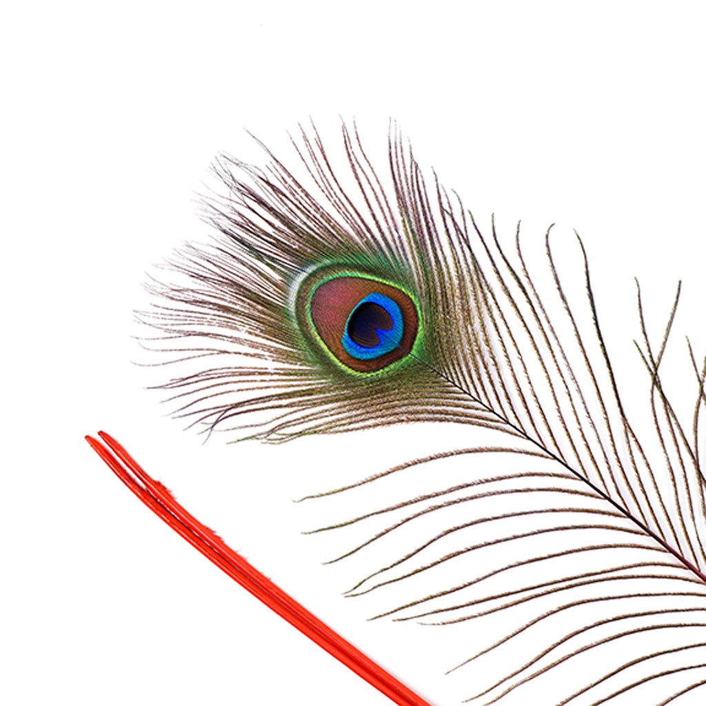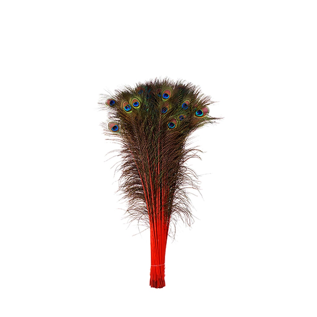 Peacock Tail Eyes Stem Dyed - 25-40 Inch - 100 PCS - Red