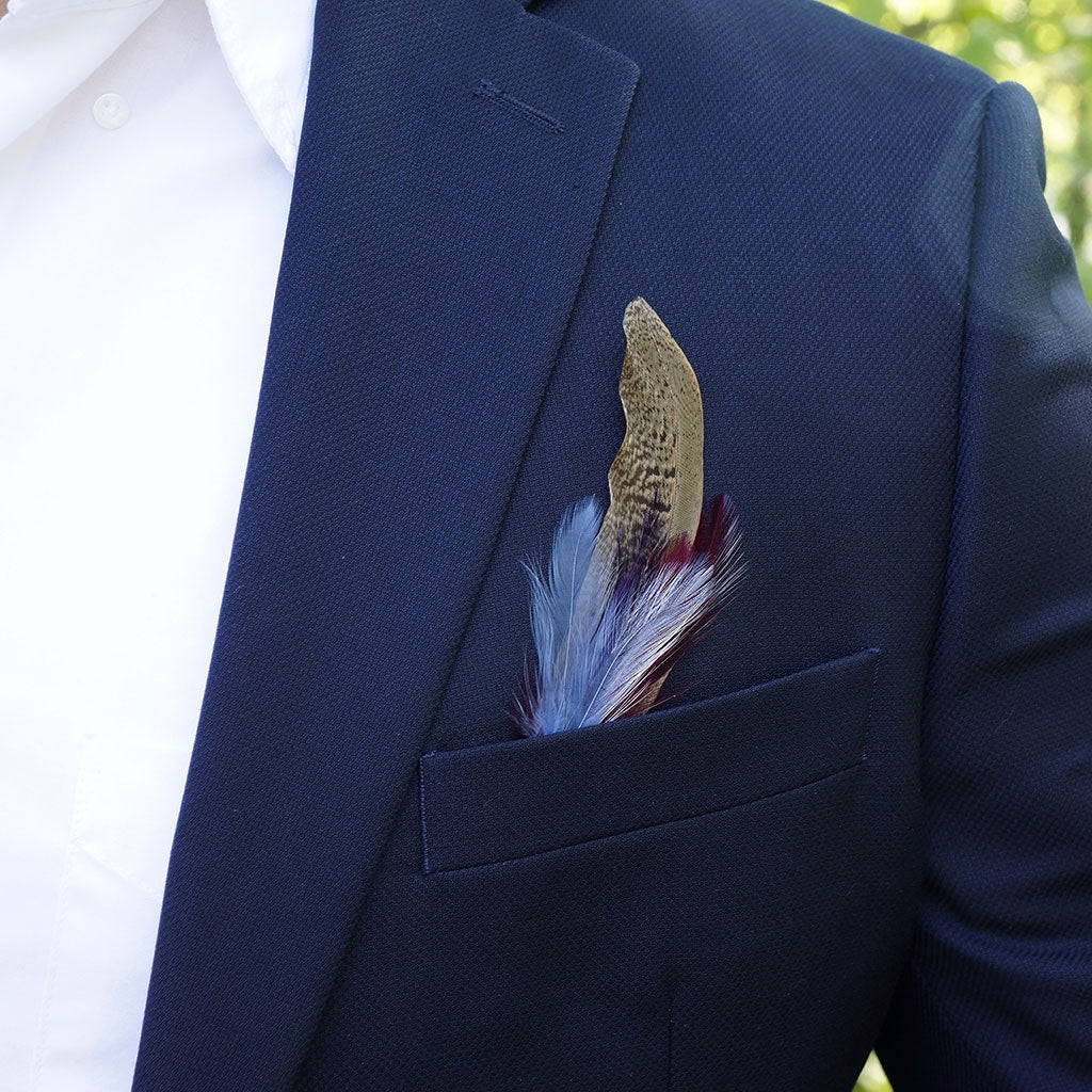 Add a touch of class with this elegant Feather Hat Trim made with dyed Hackle and Pheasant feathers measuring approximately 4-5 inches. Each feather trim is wrapped with floral tape near the tip of the quill and can be easily added to your favorite hat or pinned to the lapel of a jacket. Each package contains two hat trims.