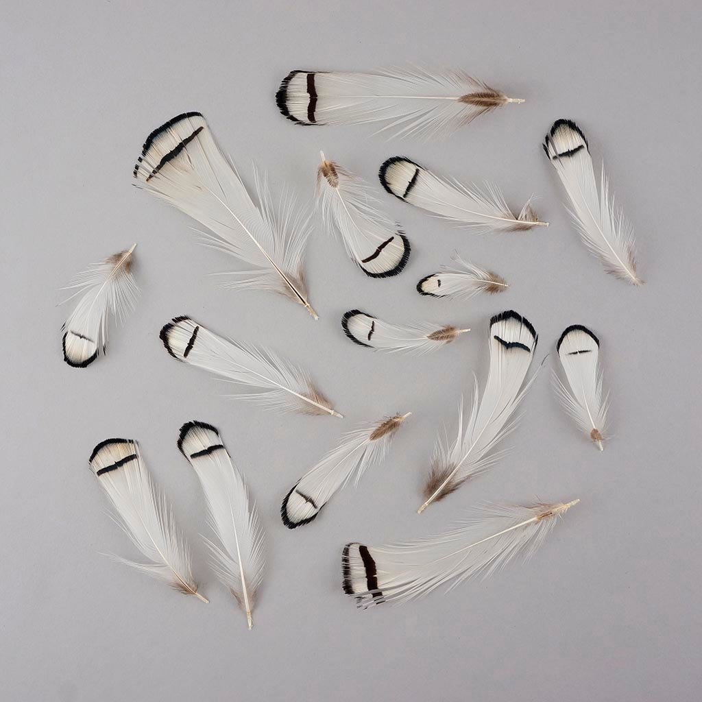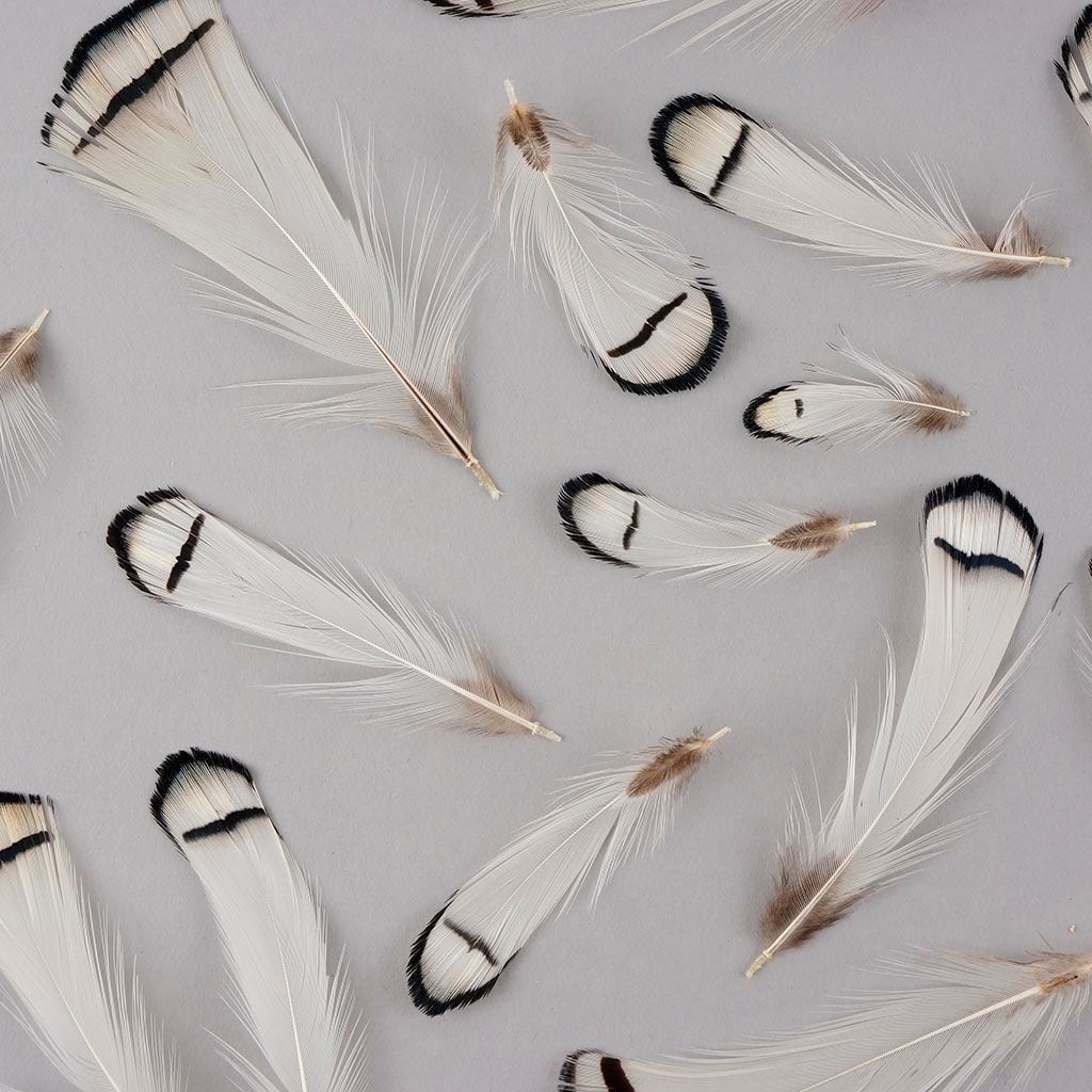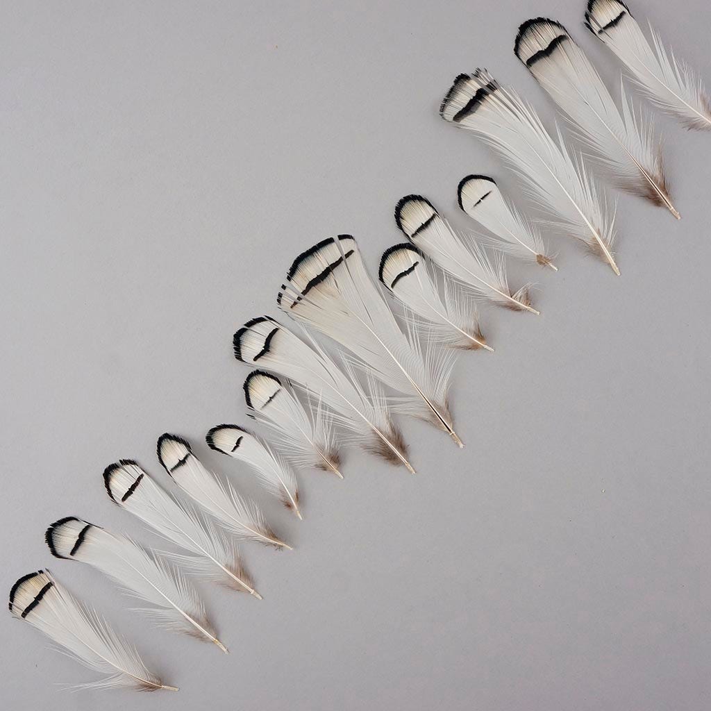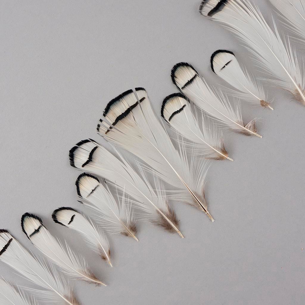 Loose Lady Amherst Pheasant Crest Plumage feathers range in size from 1-3.5 inches.
