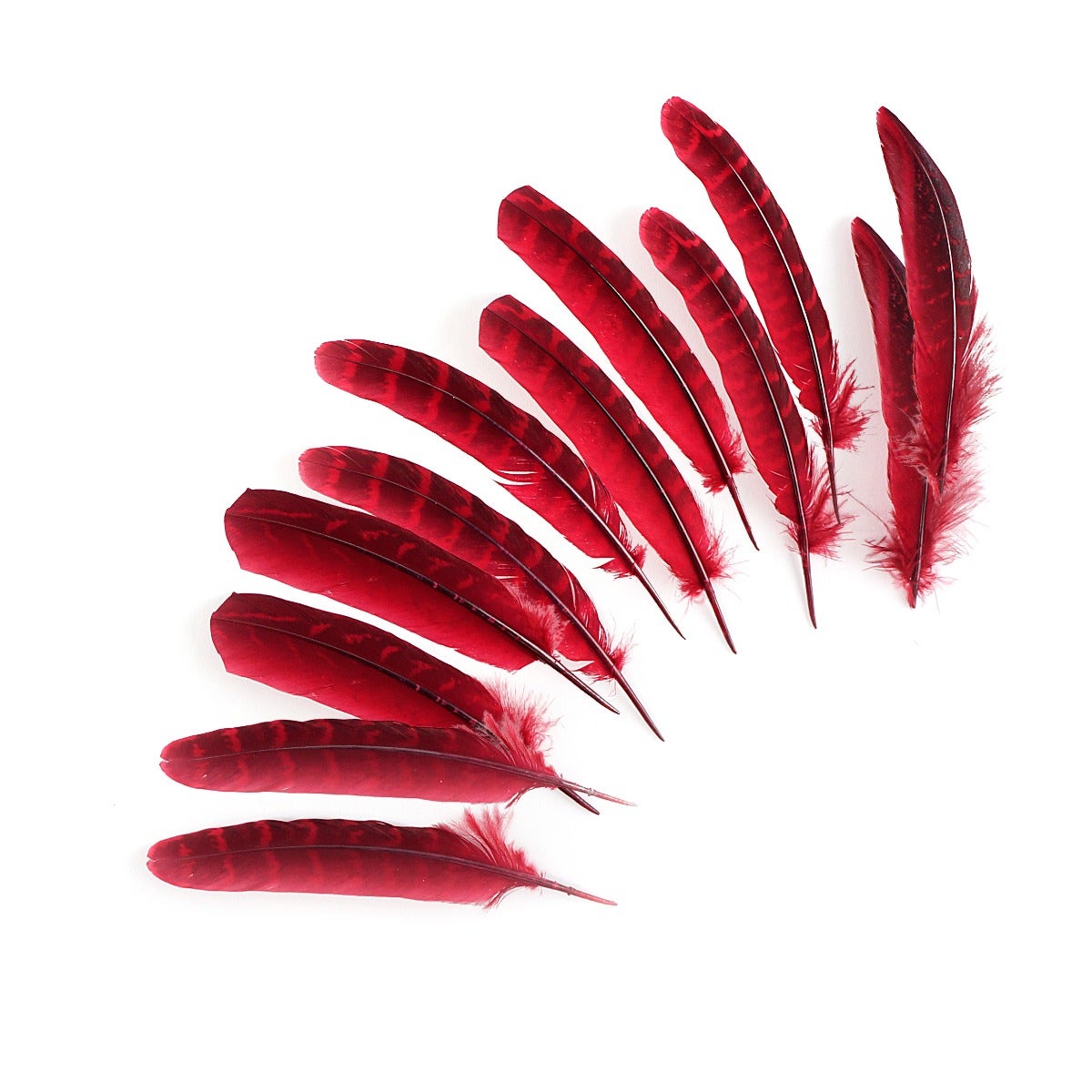 Dyed Pheasant Ringneck Tail Feathers are approximately 4-5 inches long and come in a 12 piece package. This product is part of our Packaged Feathers - Pheasant category.