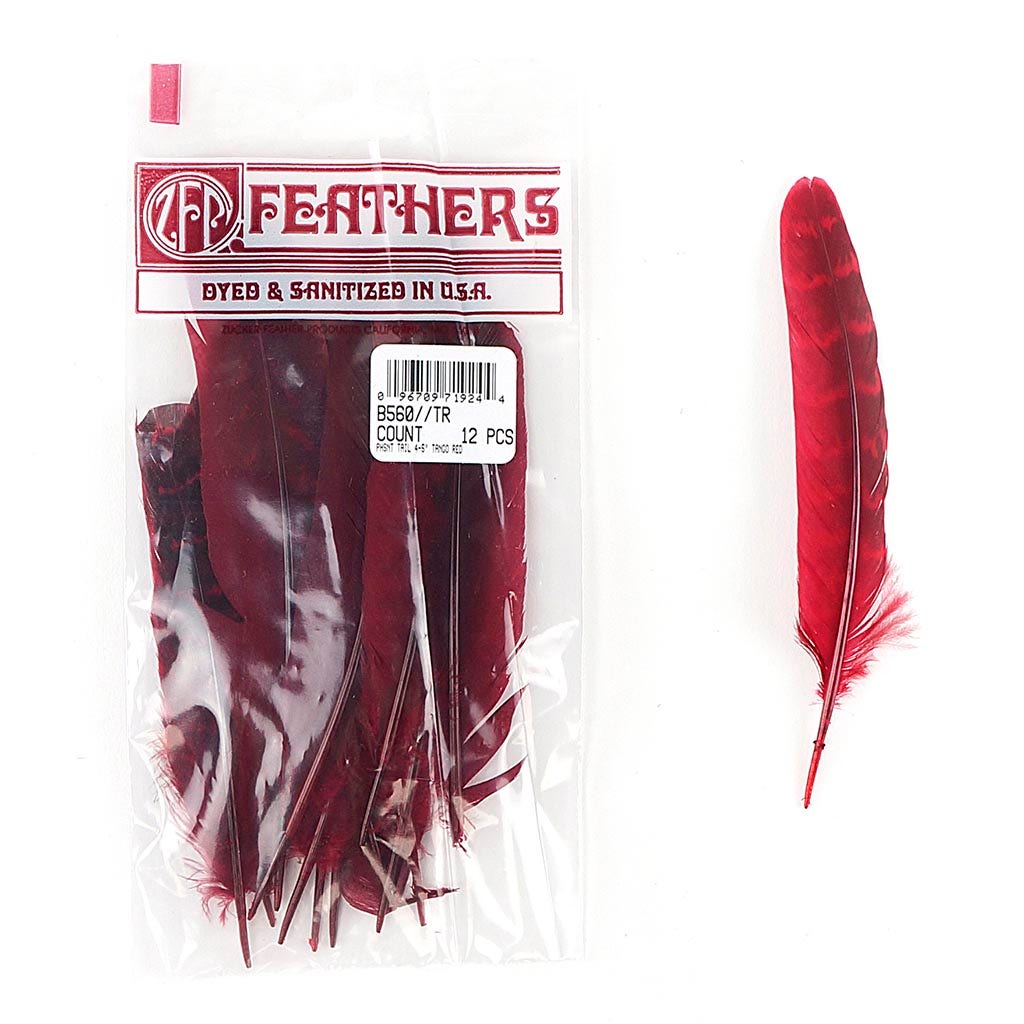 Pheasant Tail Feathers Dyed - Tango Red