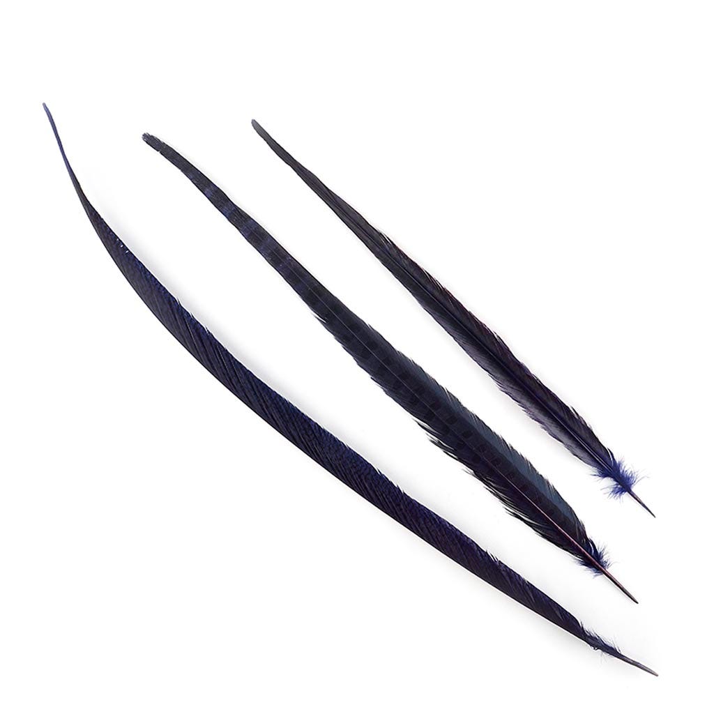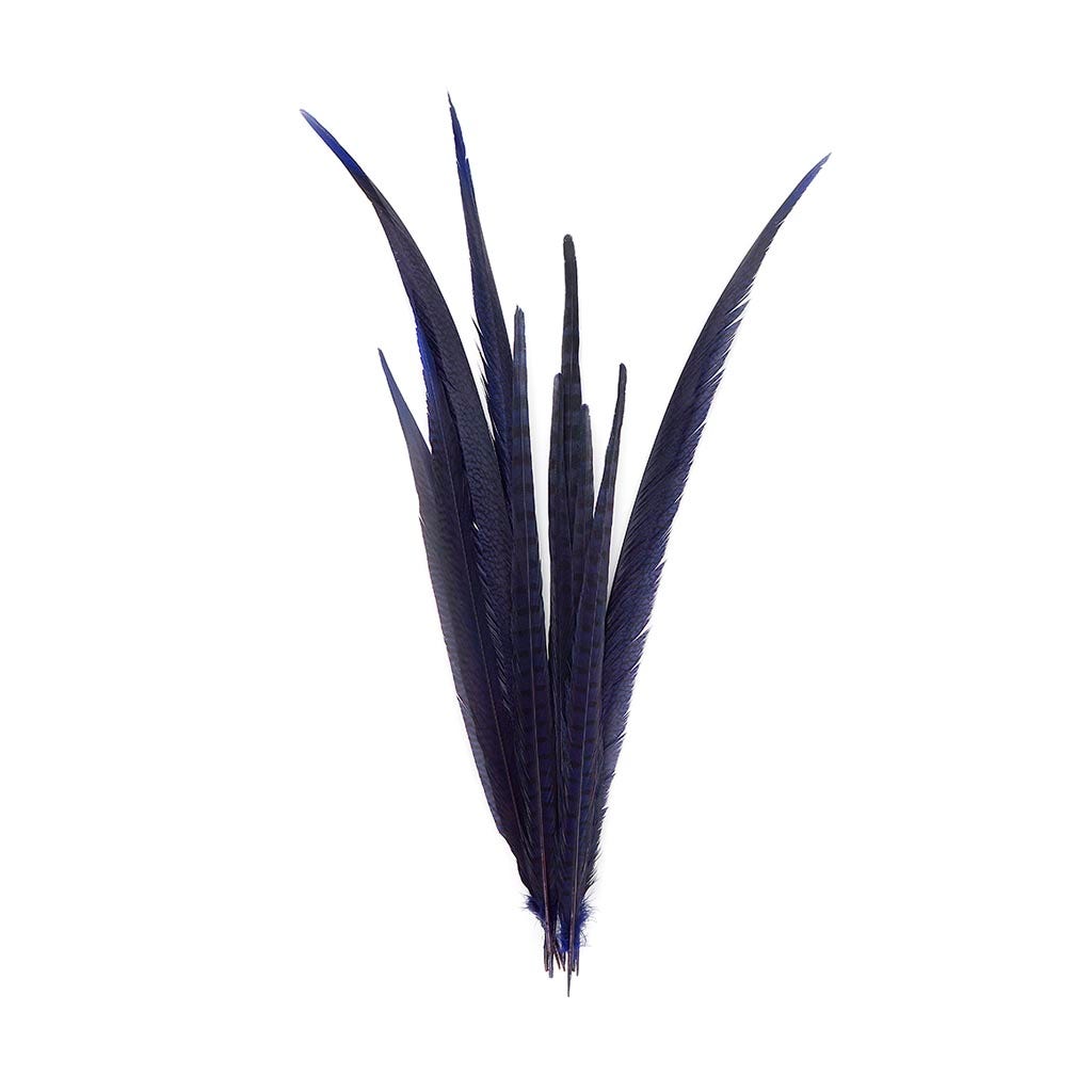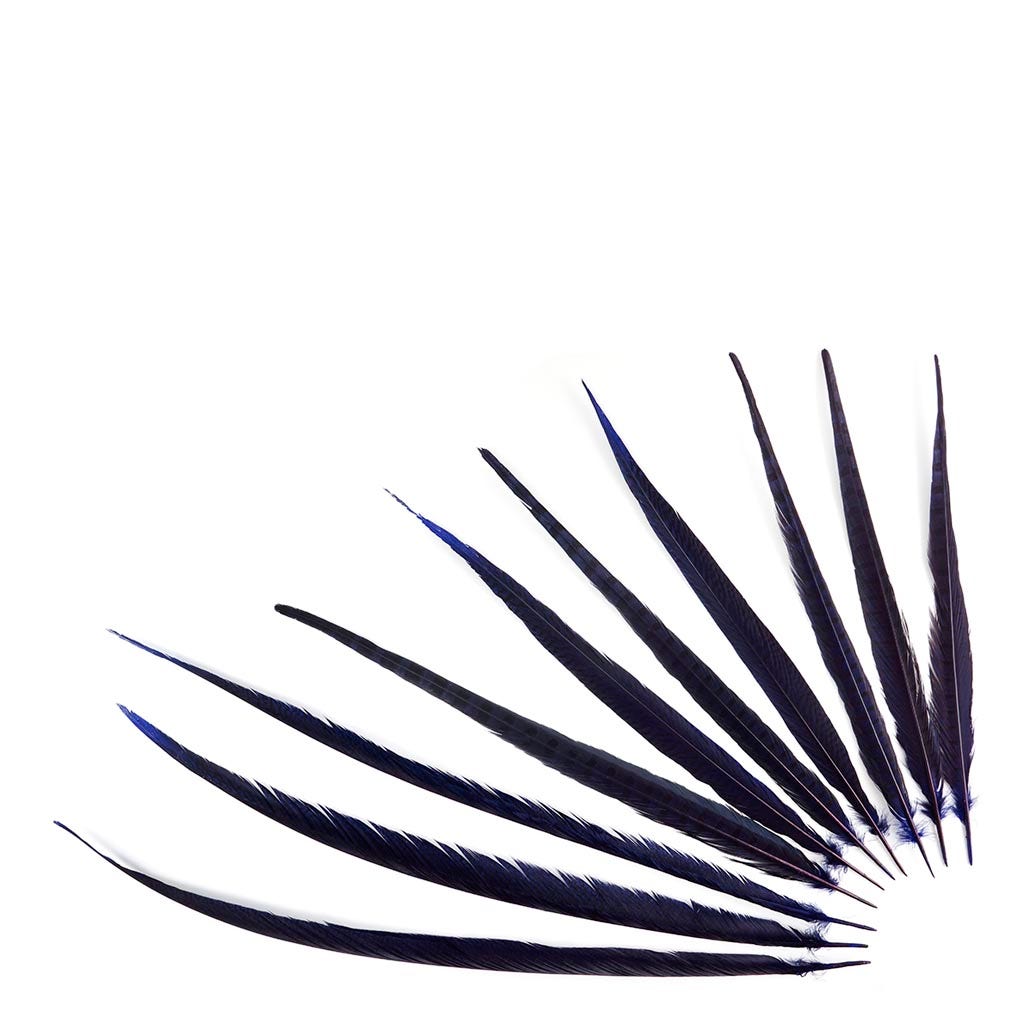 Assorted Bleached-Dyed Golden and Ringneck Pheasant Tail Feathers will range approximately 16-30 inches long. This package comes with 10 pieces per package in a variety of both Ringneck and Golden styles and sizes. These tail feathers are stiff and have been bleached, then dyed to make the feather appear all one color with natural markings barely visible.