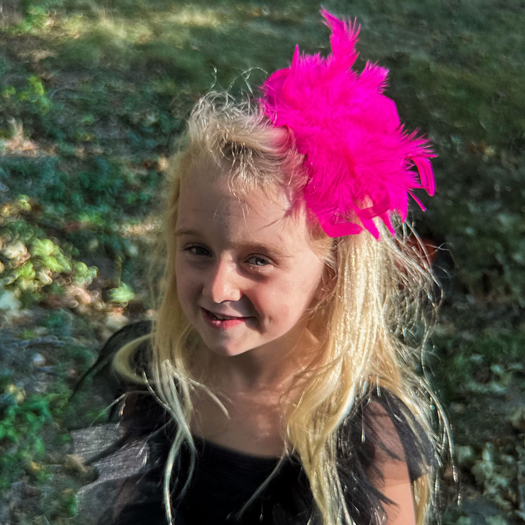 Pink Feather Hair Accessory - This fluffy feather hair piece in pink is a perfect accent to add to our flamingo costume wings, for dance costumes, for birthday hair styles, or little girl dress up.