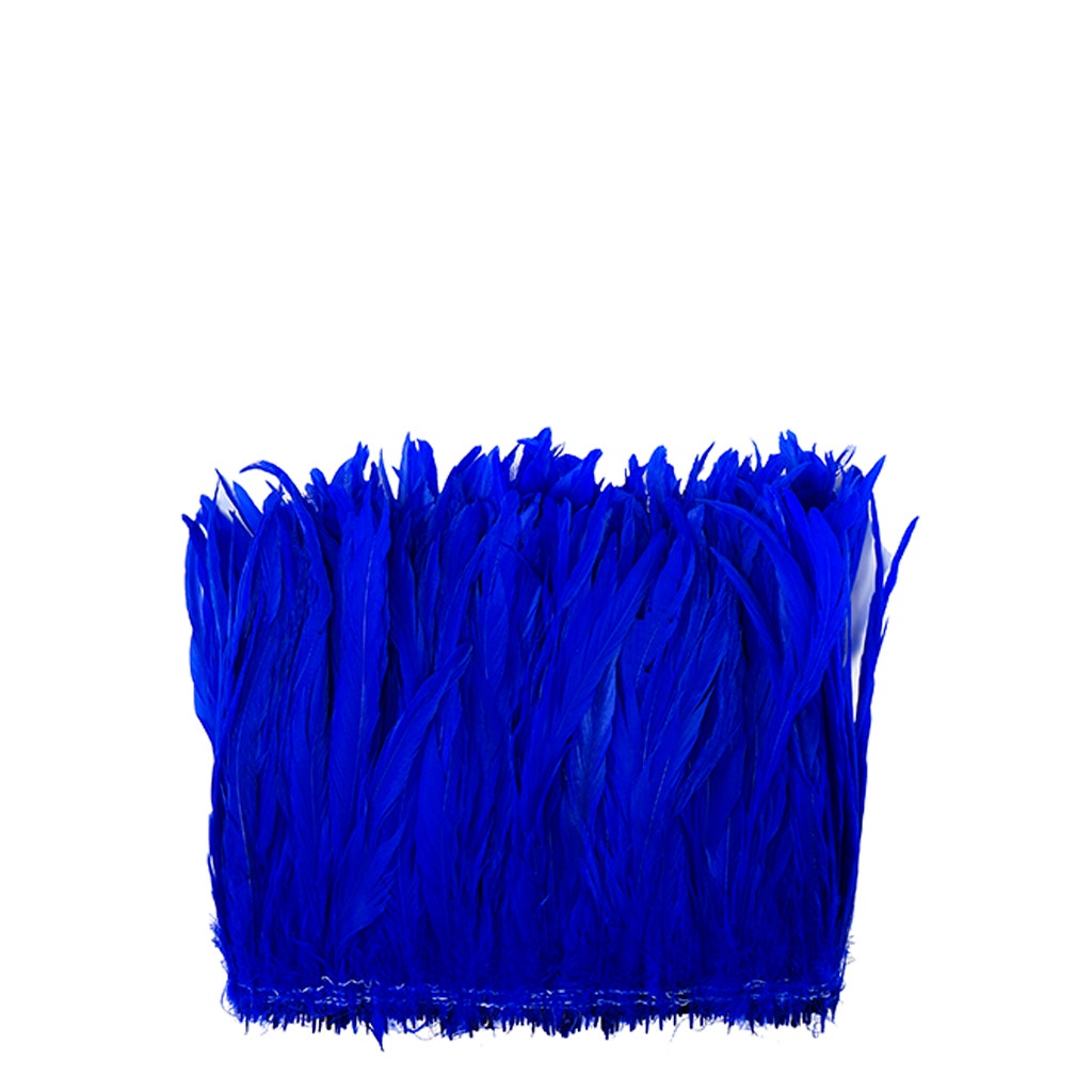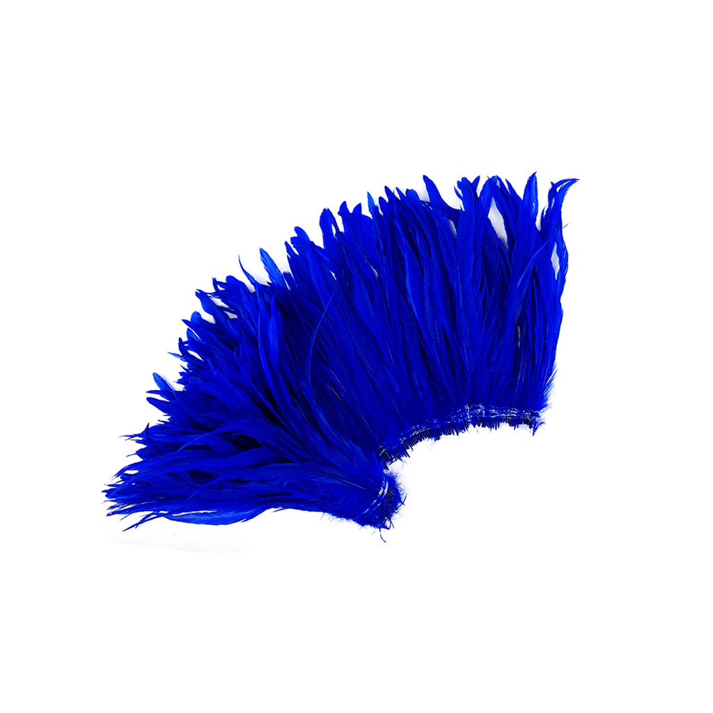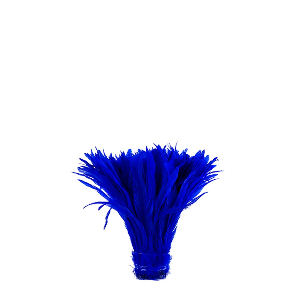 White-Dyed-Rooster Coque Tail Feathers approximately 9-12 inches long are strung (sewn) together near the tip of the quill. Rooster Coque tails tend to be long, narrow feathers (about 3/4-1" wide) with a sturdy, but flexible spine (quill). White rooster feathers when dyed produce very vivid, bright, rich colors. These feathers can be curled using a blunt object and a soft touch.