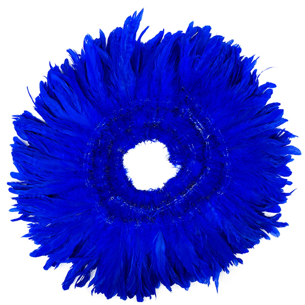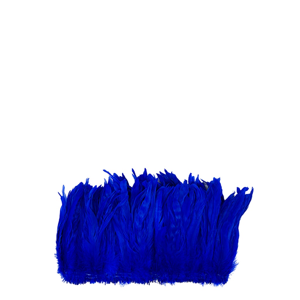White-Dyed-Rooster Coque Tail Feathers approximately 5-8 inches long are strung (sewn) together near the tip of the quill. Rooster Coque tails tend to be long, narrow feathers (about 3/4-1" wide) with a sturdy, but flexible spine (quill). White rooster feathers when dyed produce very vivid, bright, rich colors. This item is currently stocked in colors shown available.