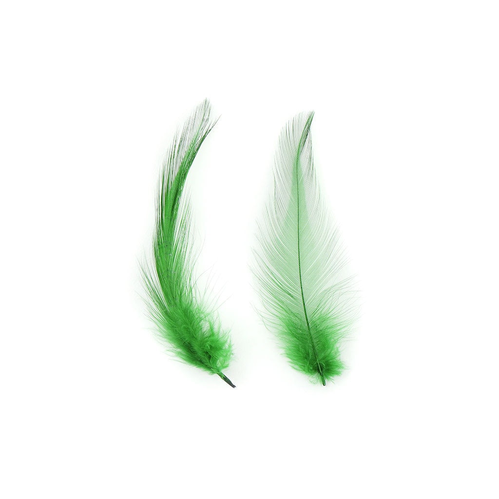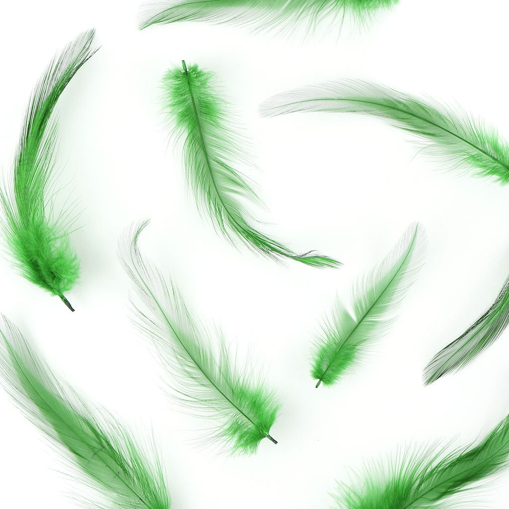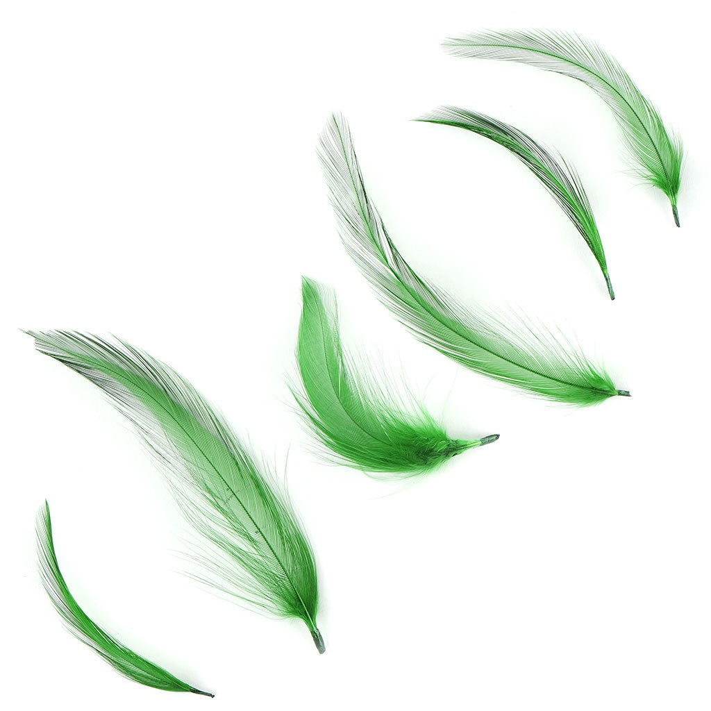 Rooster Dyed Blood Quill (neck) Hackle Feathers 1-3 inches are loose, and are soft , flexible feathers with very little fluff near the quill. Hackle feathers are usually no wider than 1/2" wide are wispy (almost see through) thin, and pointed at the tip. This style of feather is naturally white and then dyed with colors with a natural sheen.
