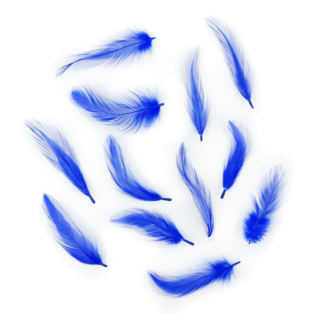 Rooster Dyed Blood Quill (neck) Hackle Feathers 1-3 inches are loose, and are soft , flexible feathers with very little fluff near the quill. Hackle feathers are usually no wider than 1/2" wide are wispy (almost see through) thin, and pointed at the tip. This style of feather is naturally white and then dyed with colors with a natural sheen.
