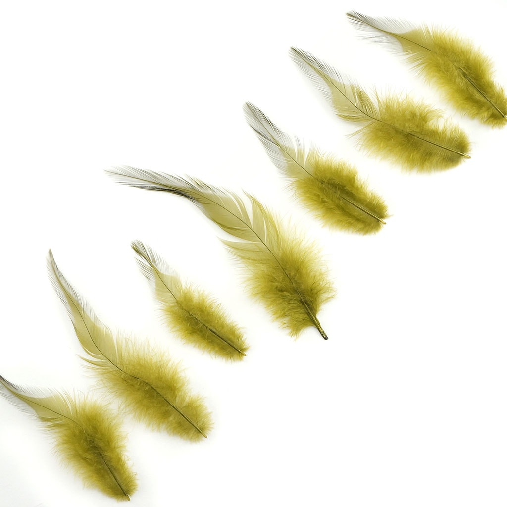 Loose White Rooster Saddle Feathers approximately 3-6 inches long. Rooster saddle (back) feathers are long and narrow, with a sharp pointed tip (between 1/4-1/2 inch wide). Saddles tend to have a natural sheen and are fluffy, soft flexible feathers. Dyed over white saddle feathers will be bright, vivid colors.