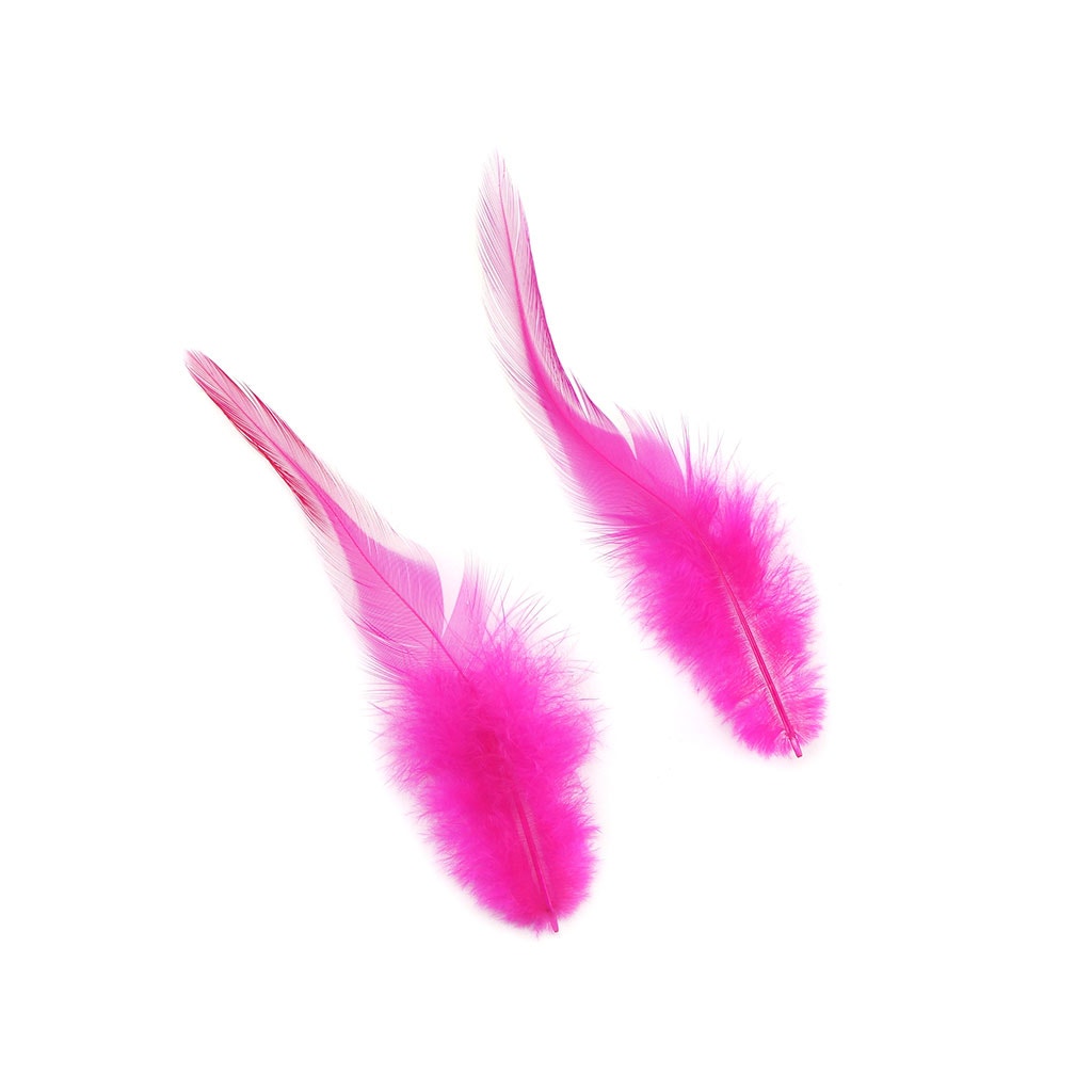 Loose White Rooster Saddle Feathers approximately 3-6 inches long. Rooster saddle (back) feathers are long and narrow, with a sharp pointed tip (between 1/4-1/2 inch wide). Saddles tend to have a natural sheen and are fluffy, soft flexible feathers. Dyed over white saddle feathers will be bright, vivid colors.