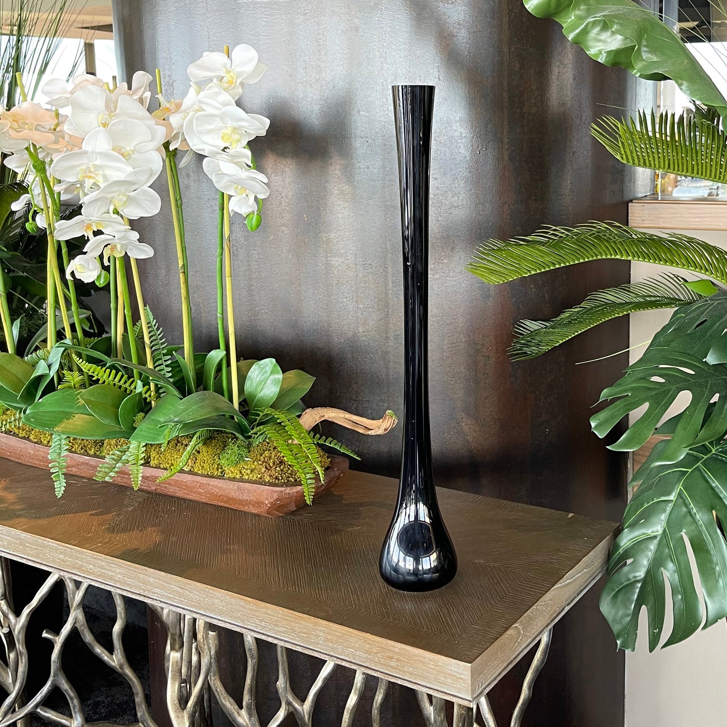 - Glass Vase Dimension: Length: 24", Width: 3.5", Height: 3.5".
