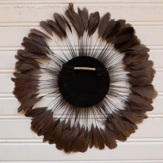 Made to Order - Small Full Moon Brown Feather Decor 11" at base with Wood is 1/2 - 6" Circle