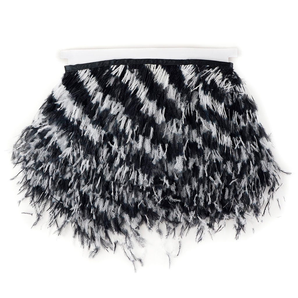 Stenciled Ostrich Fringe 1PLY - White/Black