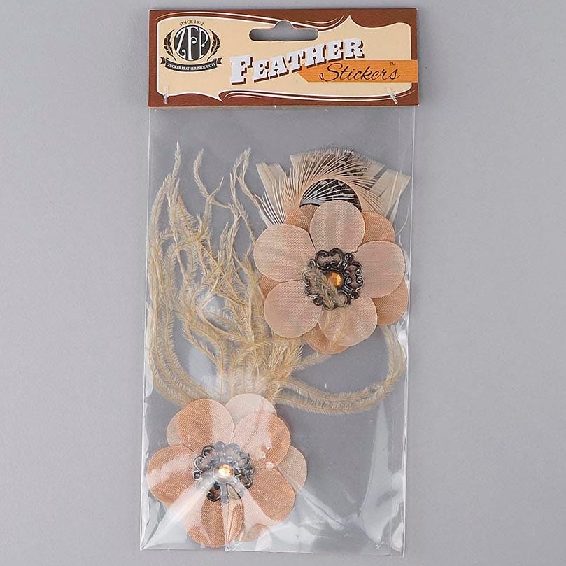 Flower Stickers w/Feathers 2 pcs -