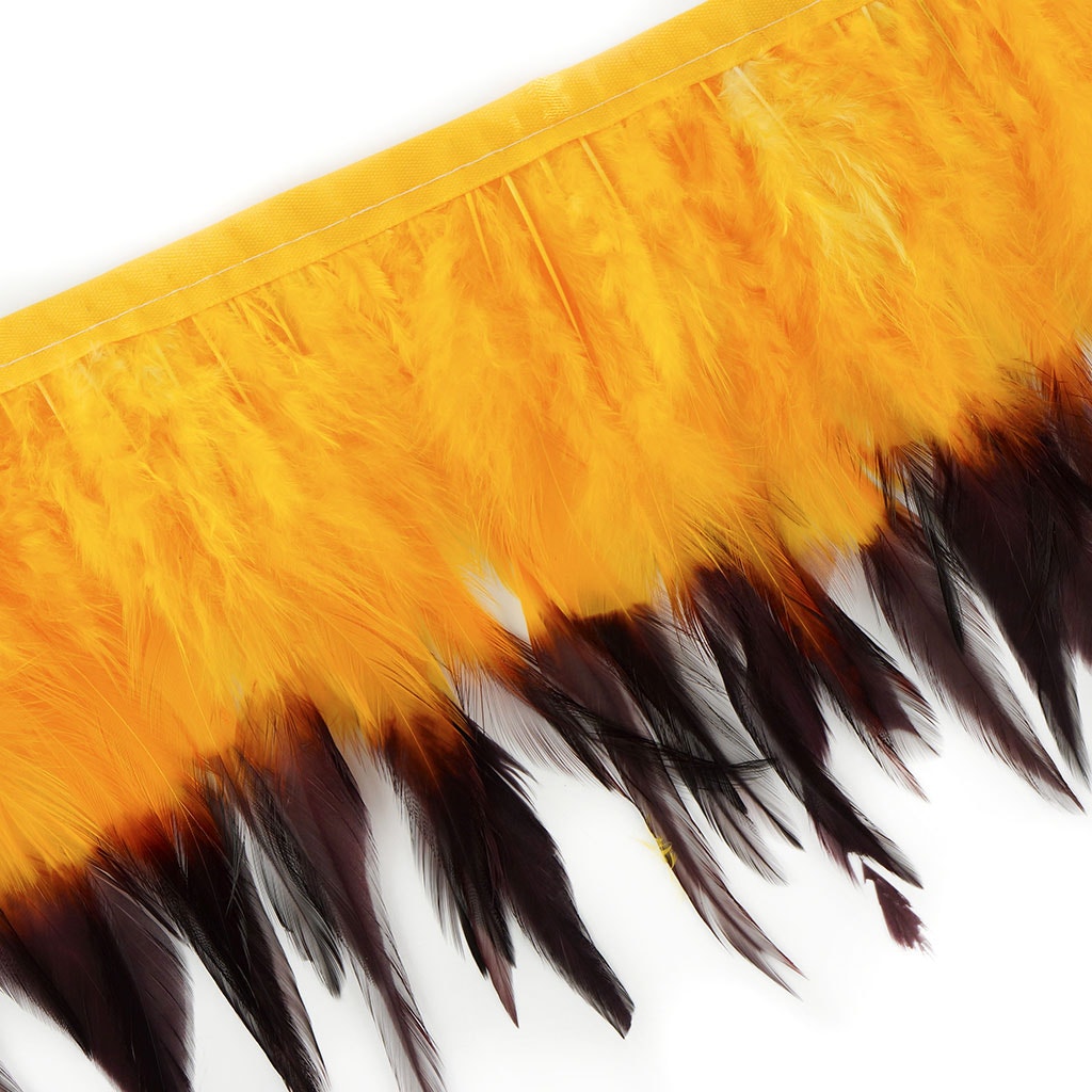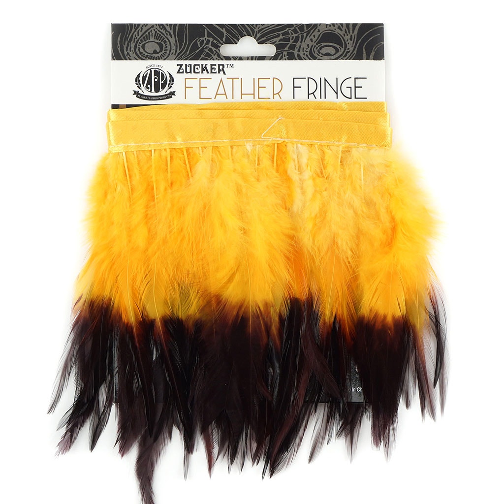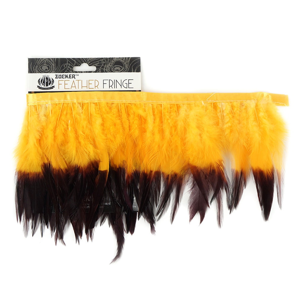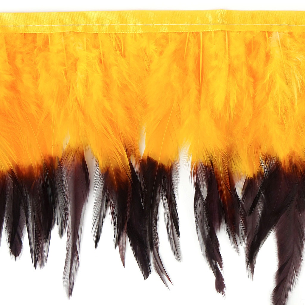 Tip Dyed Saddle Feather Fringe is approx 6-8" inches long by 1 yard (3 feet) wrapped on a card and is perfect for embellishing costumes, garments or accessories.