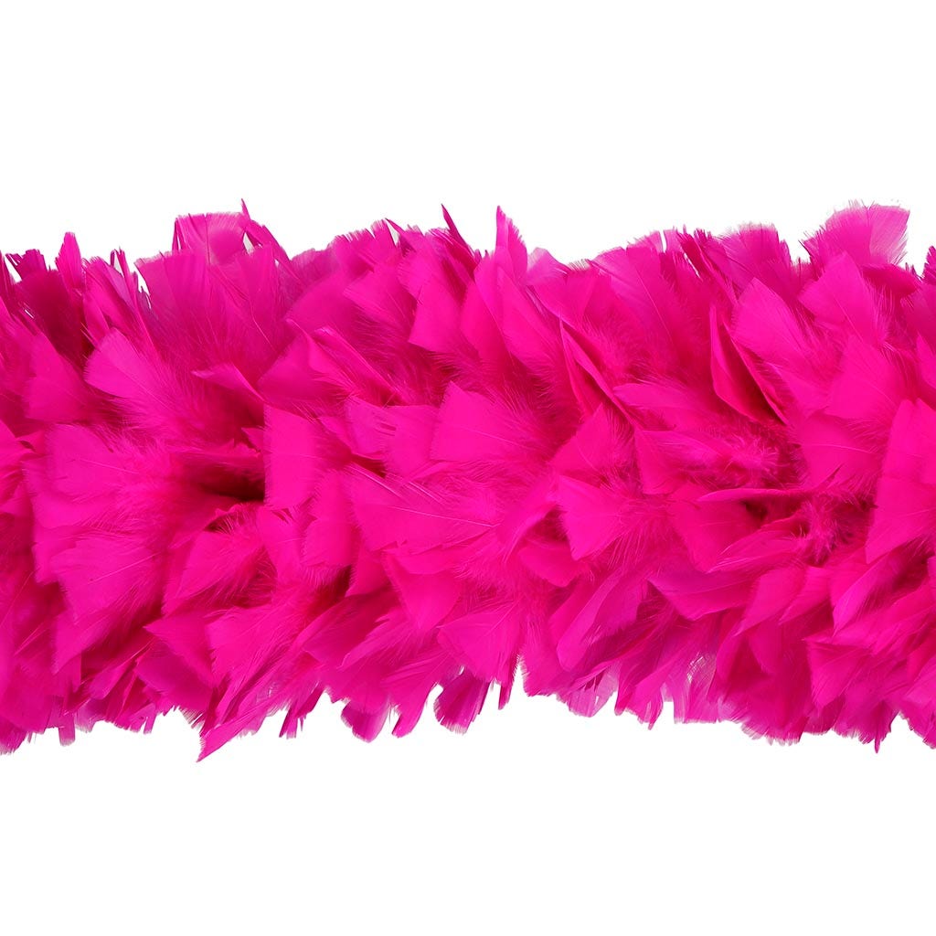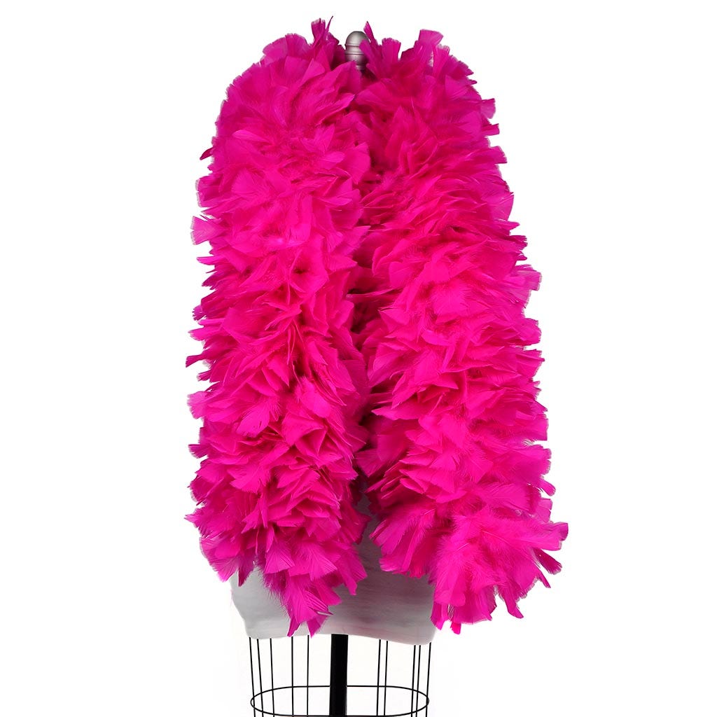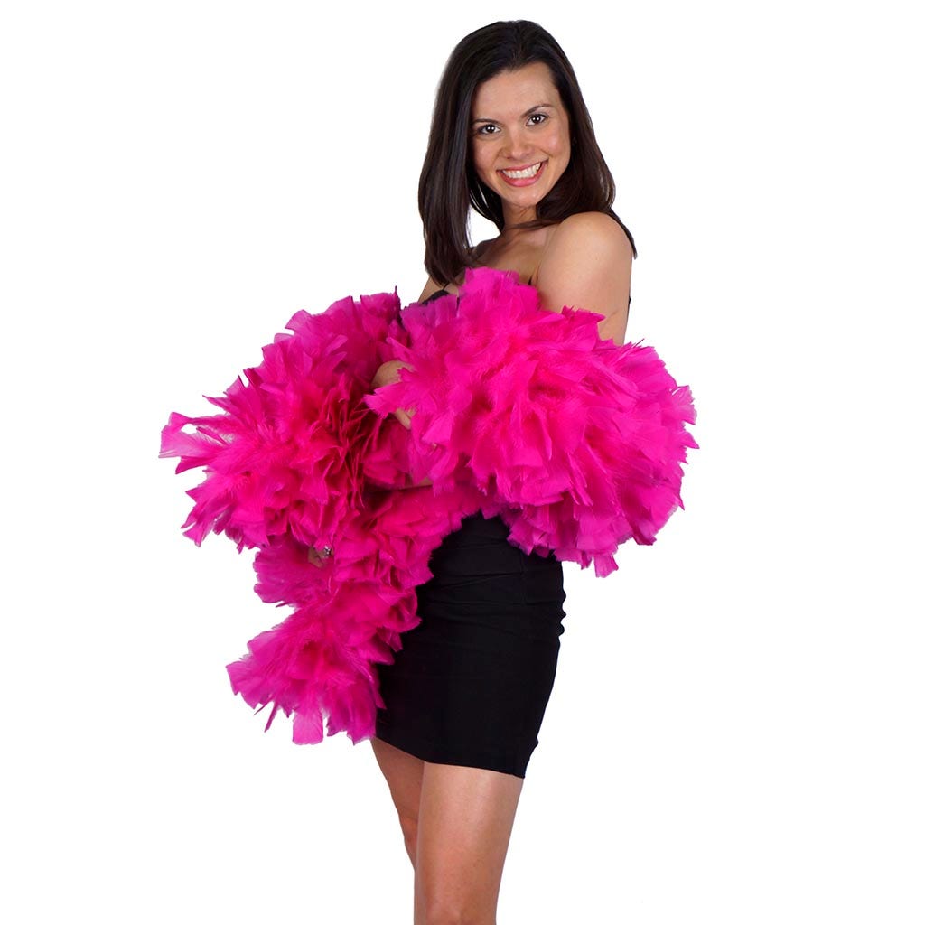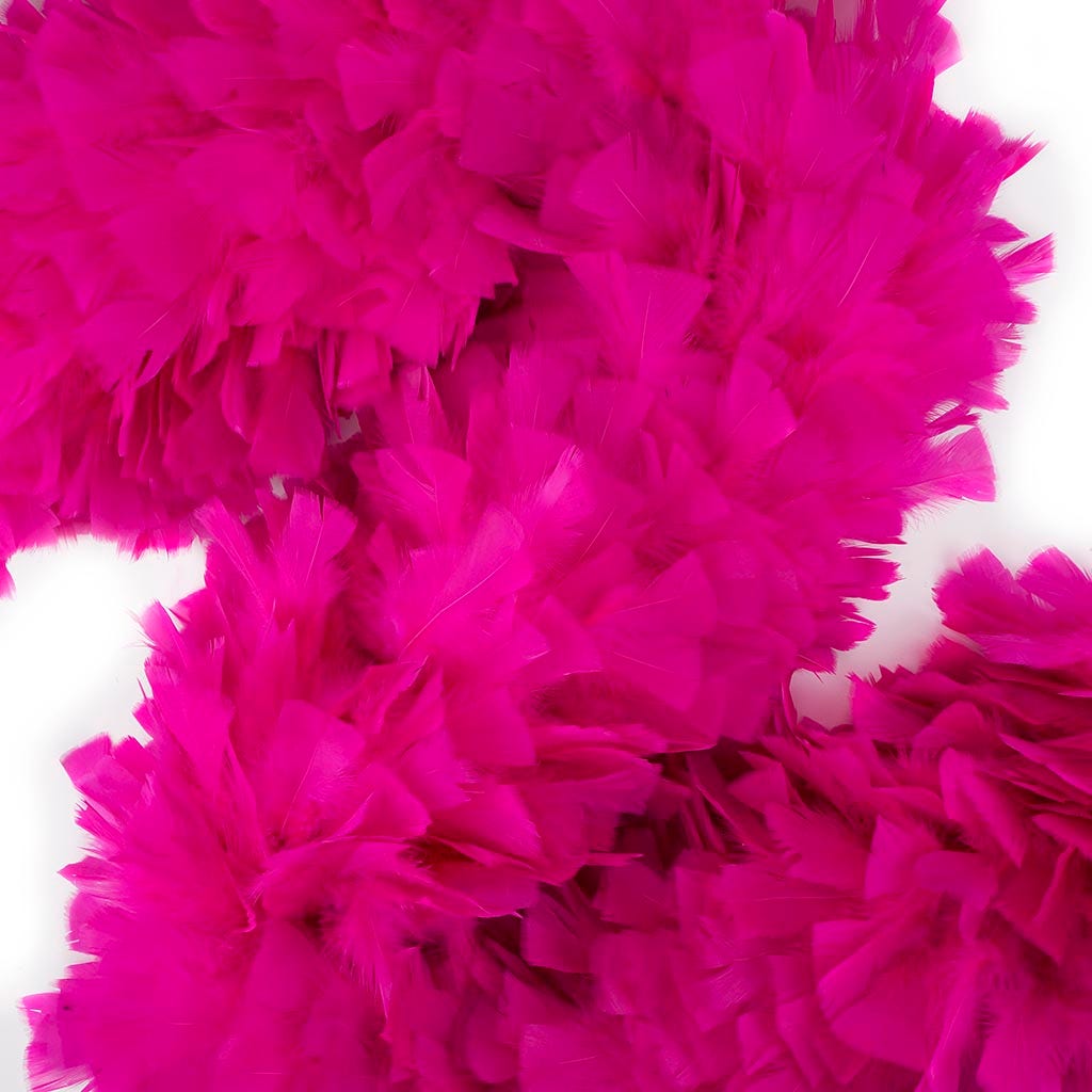 Our luxurious feather boa is made from quality turkey feathers with wide tips. This hot pink feather boa measures 2 yards (6 ft) long and approx 10-14" in diameter. This Zucker feather boa can be cut with wire cutters without unraveling as feathers are sewn onto a nylon cord and cotton-covered wire, which helps it keep its shape and not come untwisted.