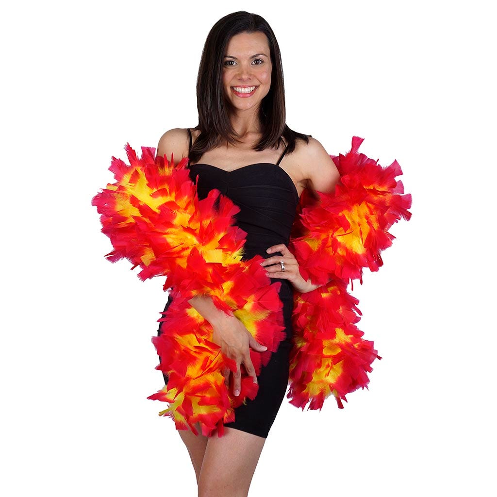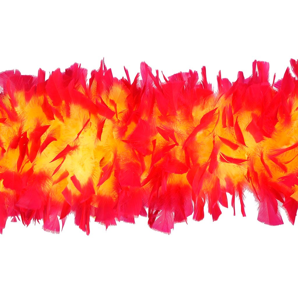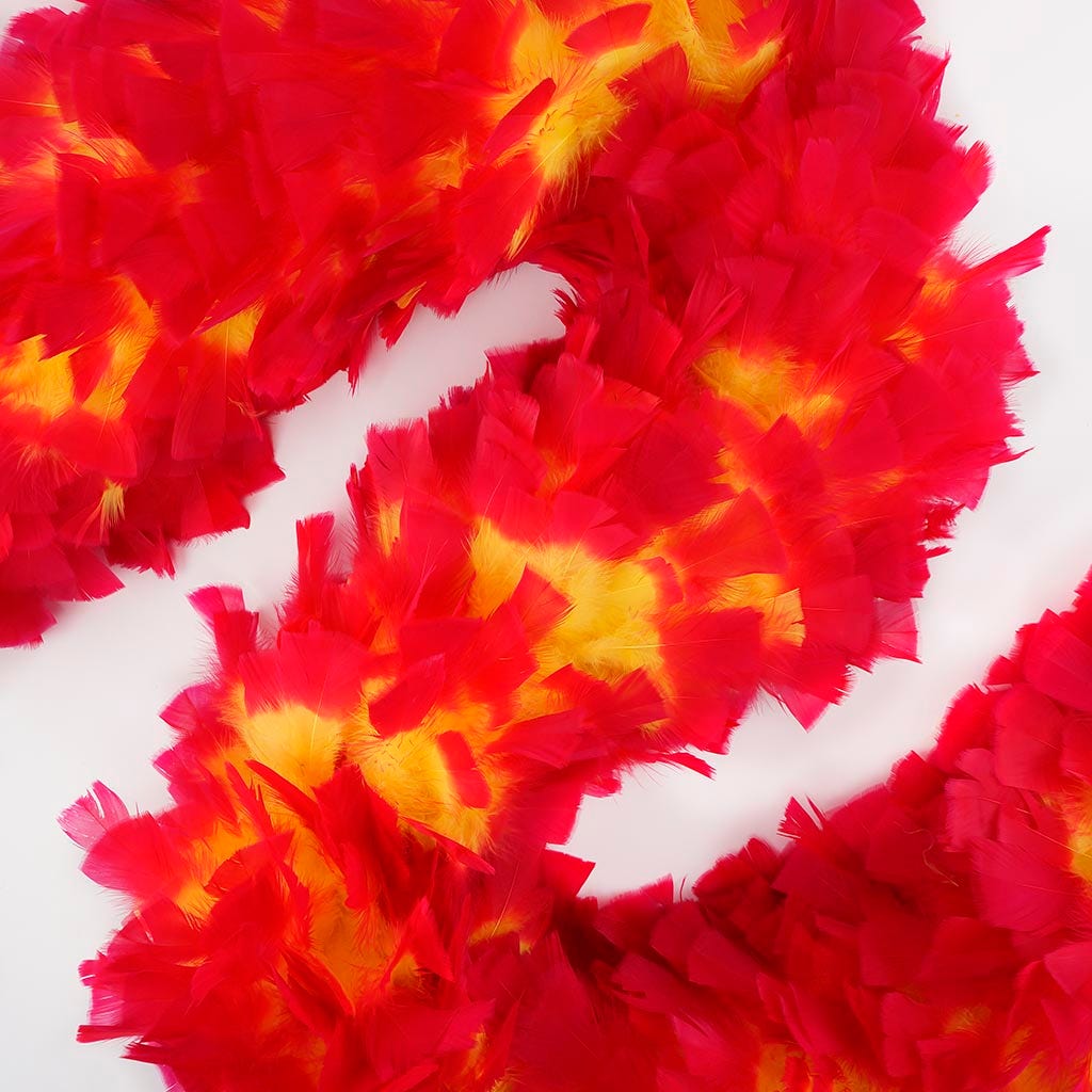 Our luxurious feather boa is made from quality turkey feathers with wide tips. This neon feather boa measures 2 yards (6 ft) long and approx 10-14" in diameter and has a unique look which comes from a two-step dyeing process that leaves the inside of the boa and feathers one color and tips the outer edge another. This Zucker feather boa can be cut with wire cutters without unraveling as feathers are sewn onto a nylon cord and cotton-covered wire, which helps it keep its shape and not come untwisted.