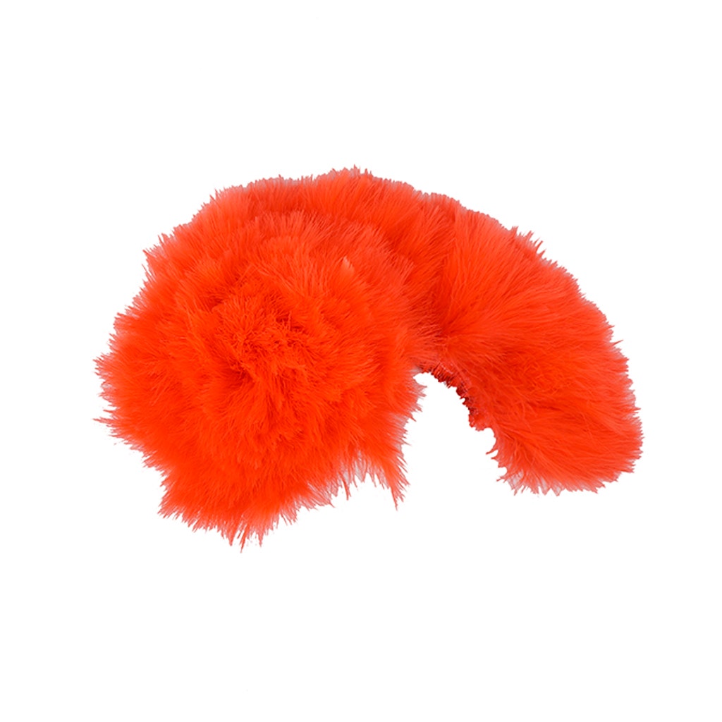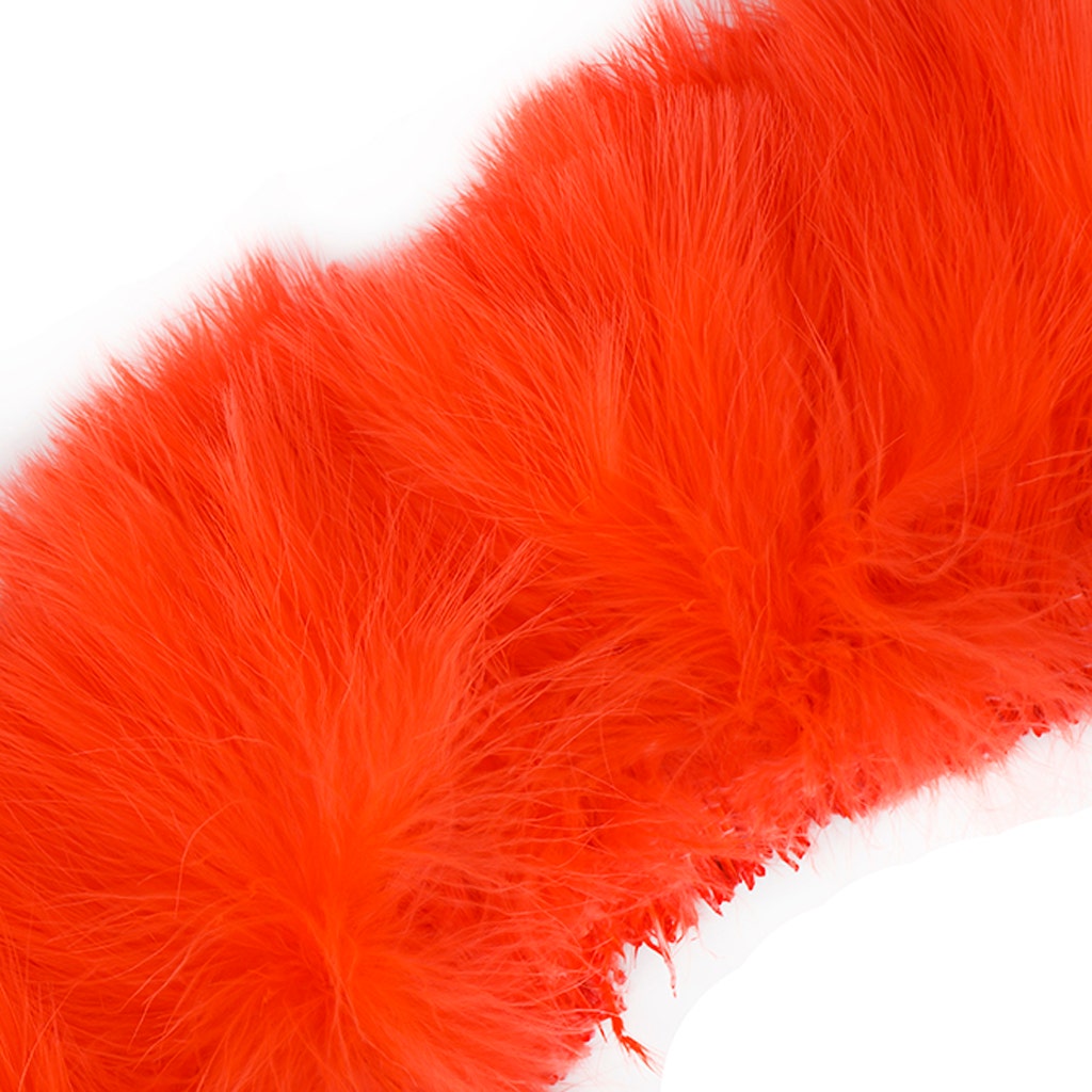 Strung Turkey Marabou Blood &Good Quill Feathers are 5-6 inches long and are strung (sewn) together near the top of each quill in a 1 yard roll. This is a mix of Blood Quill Feathers which are long, very soft and fluffy feathers, and Good Quill Feathers which are fluffy and have a stiff center quill. They are more expensive than the loose marabou, but easier to handle and makes for a neater work area.