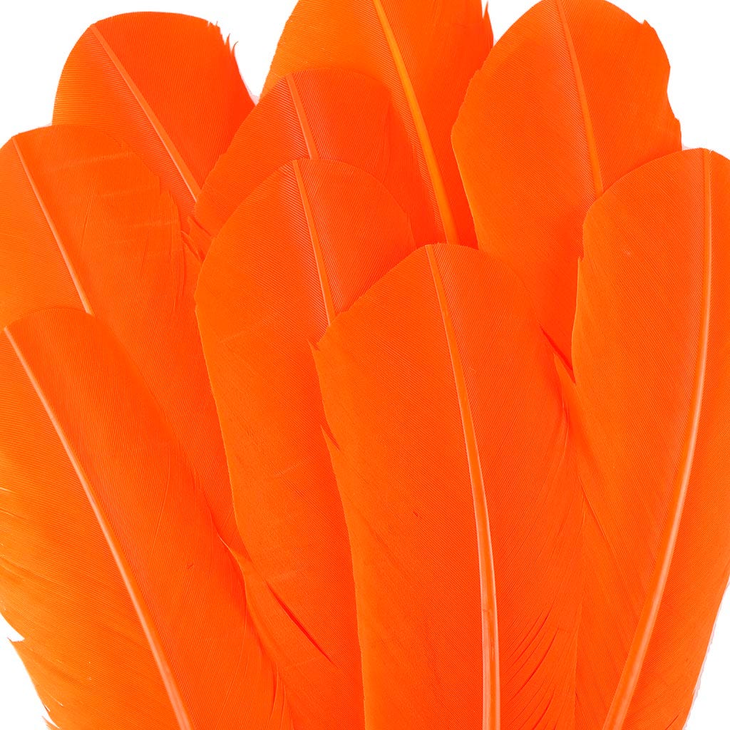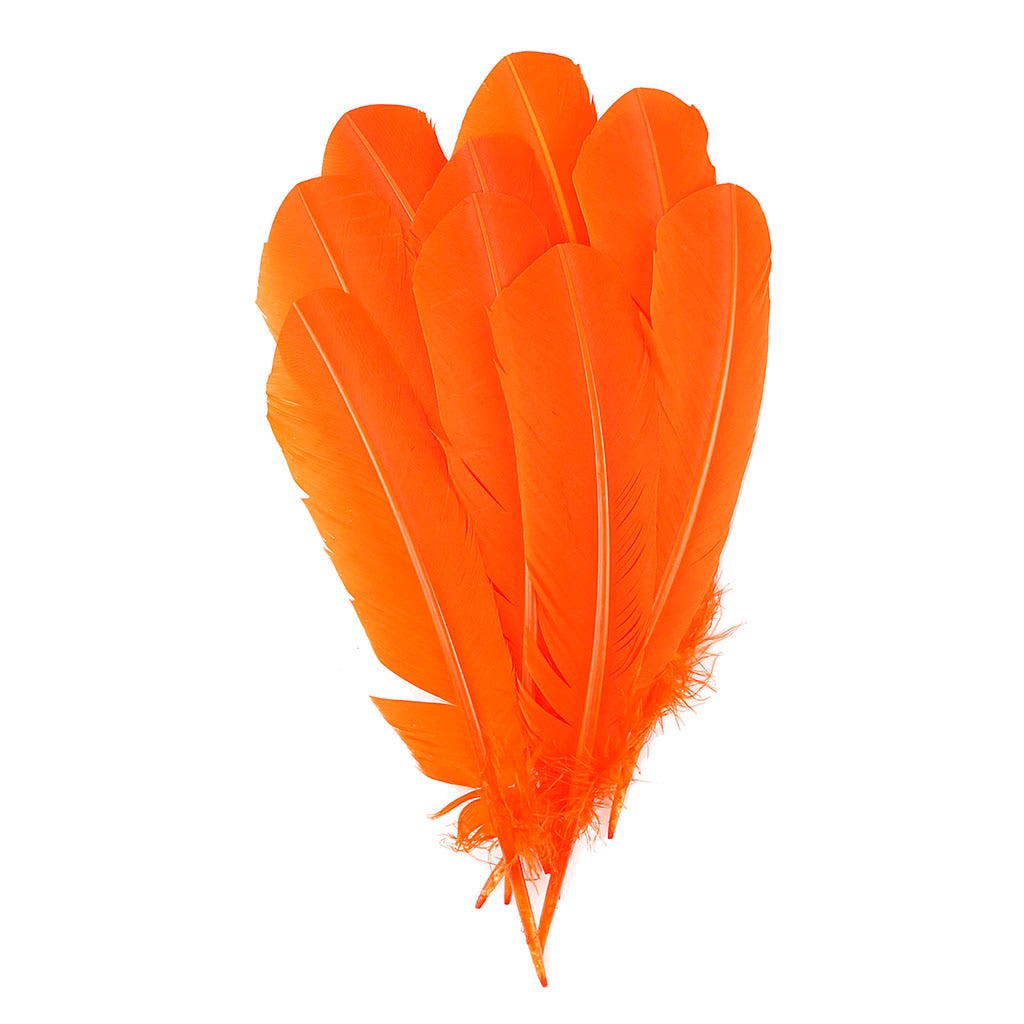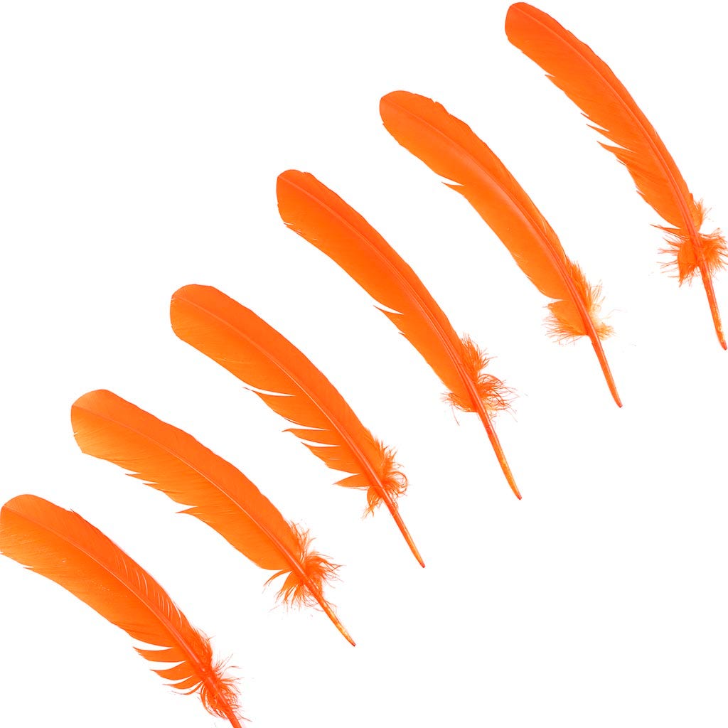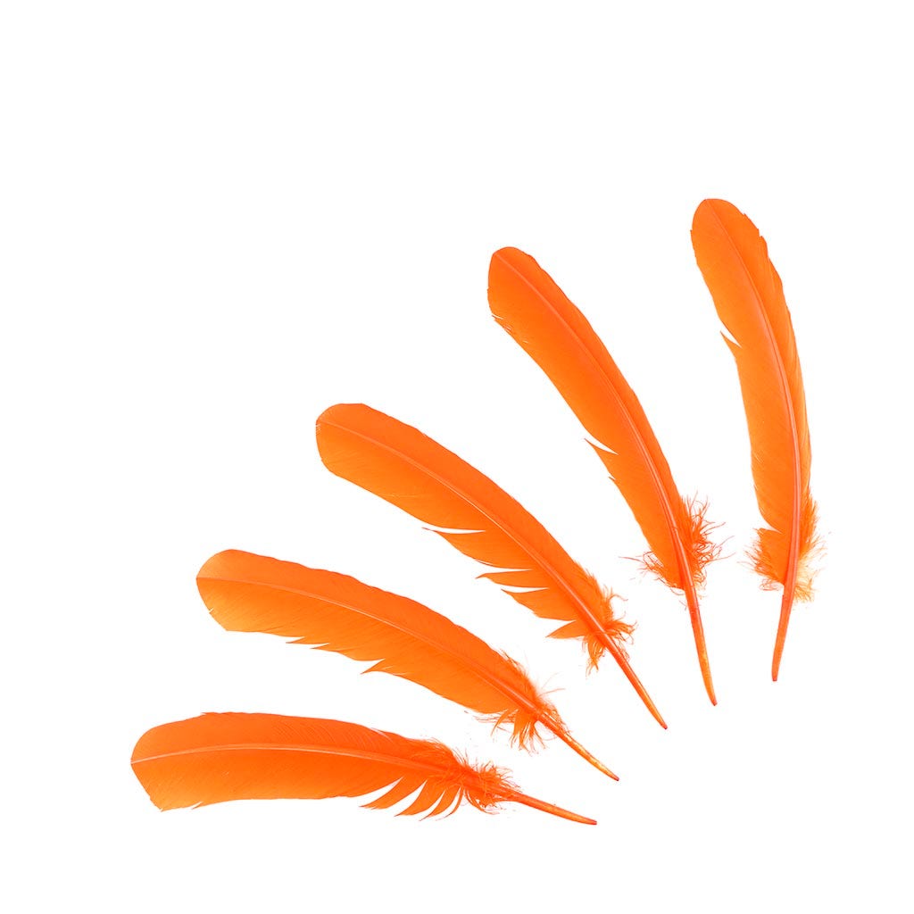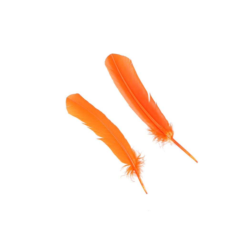Dyed Turkey Quill Left Wing Feathers are approximately 10-12 inches in length and 1-1/2 to 2 inches wide. The tops are cut for a more uniform appearance. This item is a Left Side wing quill, but is available in either a Left or Right Side in a variety of colors. Sold by the pound with approximately 275 pieces per pound.