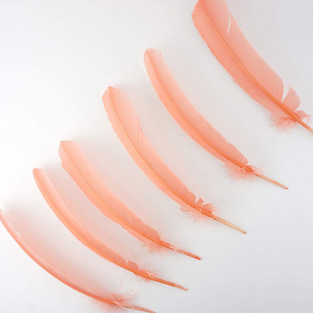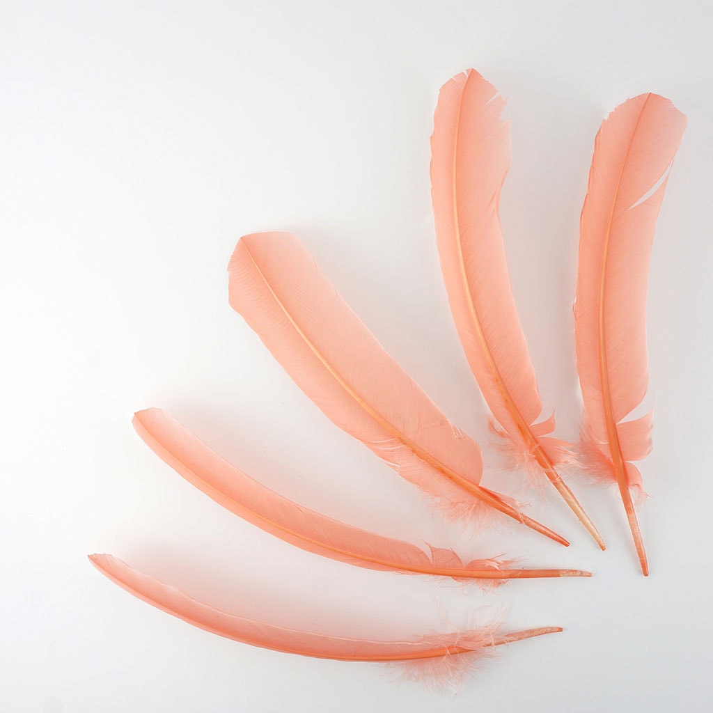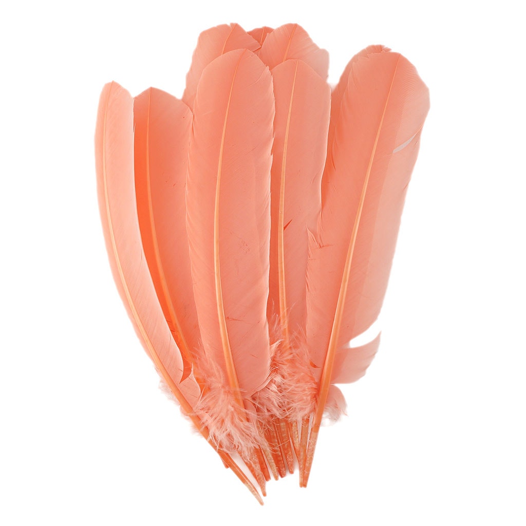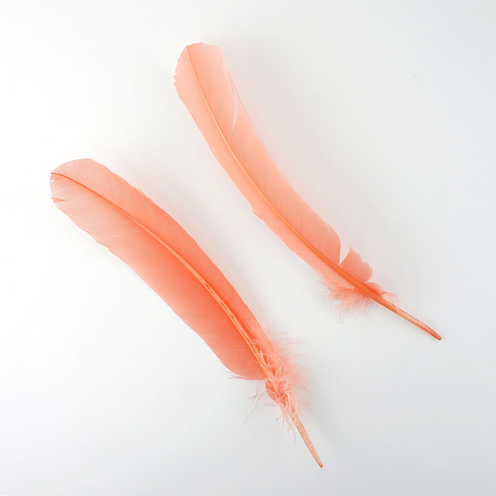 Selected Dyed Turkey Quill Right Wing Feathers are approximately 10-12 inches long and 1-1/2 to 2 inches wide. The tops are cut for a more rounded uniform appearance. This items is a Right Side wing quill, but is available in either a Left or Right Side in a variety of colors. Sold by the 100 piece package.