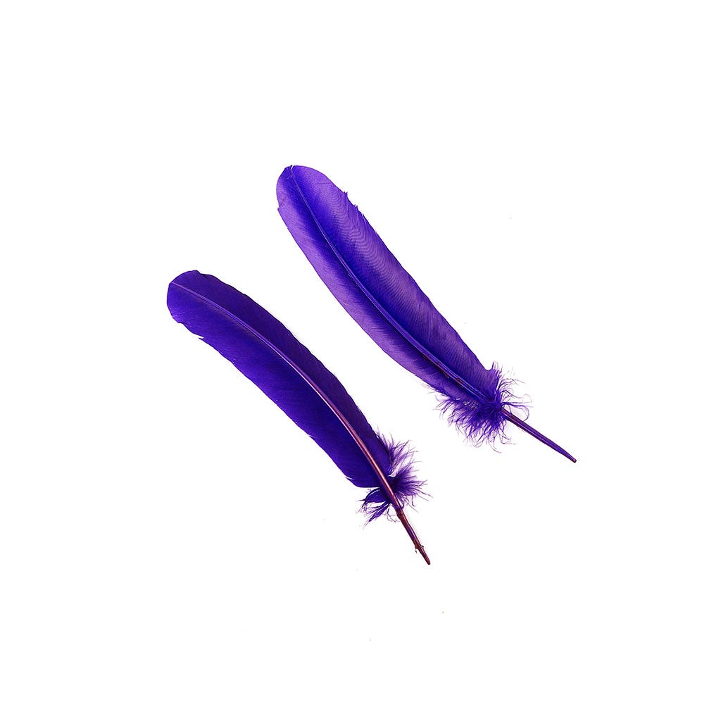 Selected Dyed Turkey Quill Left Wing Feathers are approximately 10-12 inches long and . The tops are cut for a more rounded uniform appearance. This items is a Left Side wing quill, but is available in either a Left or Right Side in a variety of colors. Sold by the 100 piece package.