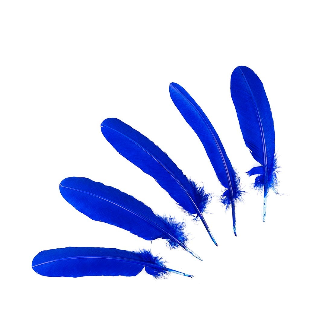 Selected Dyed Turkey Quill Left Wing Feathers are approximately 10-12 inches long and . The tops are cut for a more rounded uniform appearance. This items is a Left Side wing quill, but is available in either a Left or Right Side in a variety of colors. Sold by the 100 piece package.