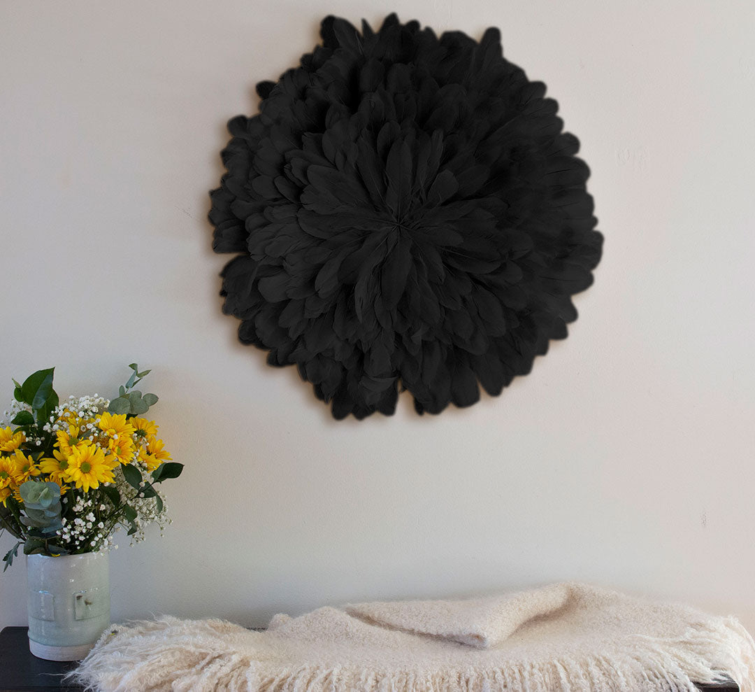 Unique Decorative Feather Wall Art Inspired by African JuJu Hats - Black