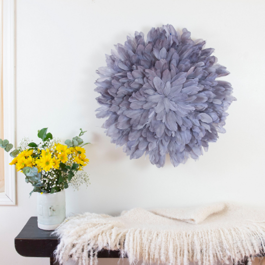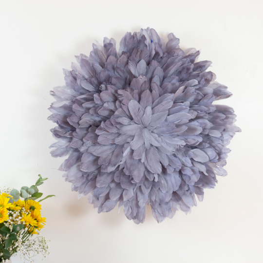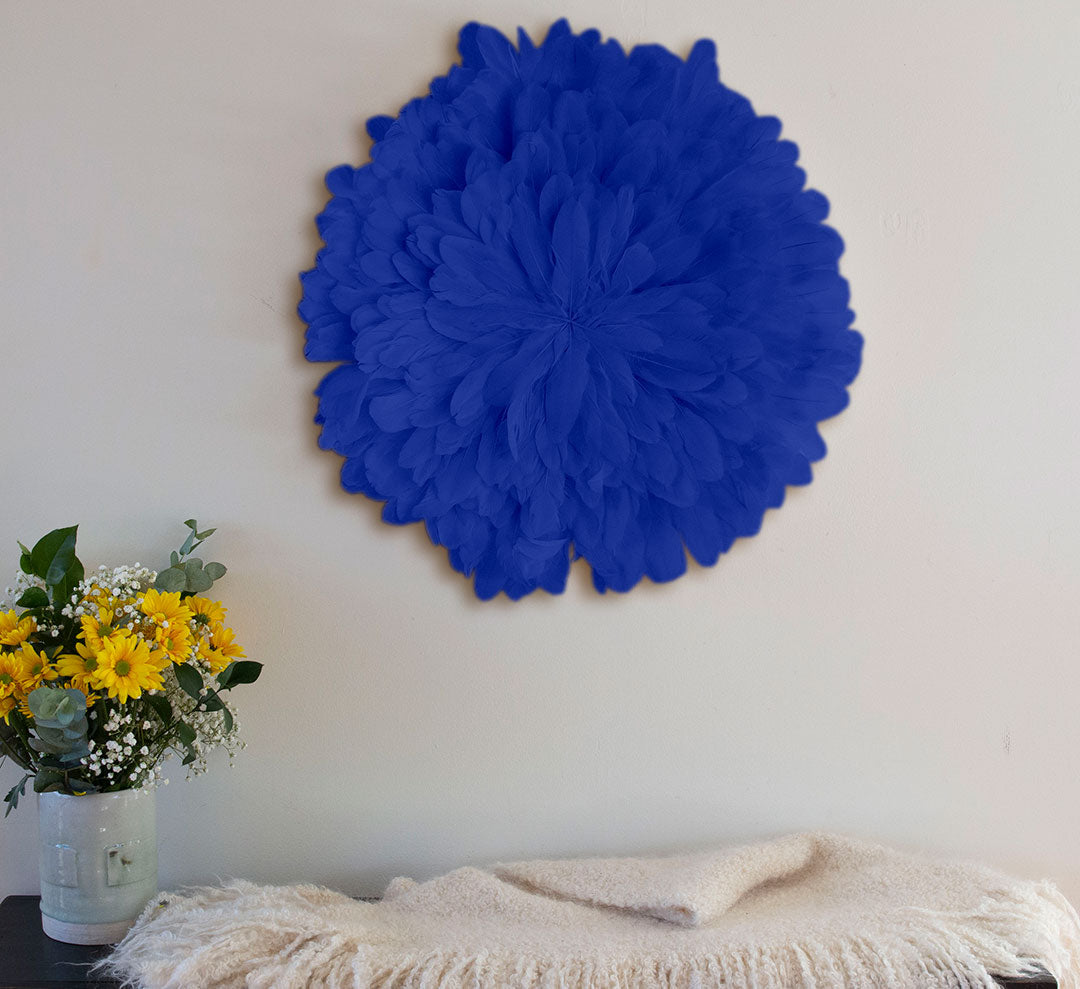 Unique Decorative Feather Wall Art Inspired by African JuJu Hats - Navy